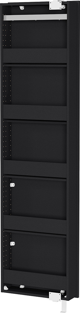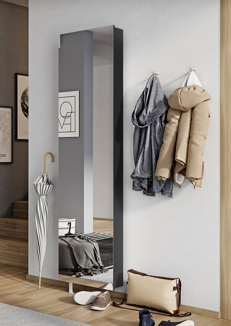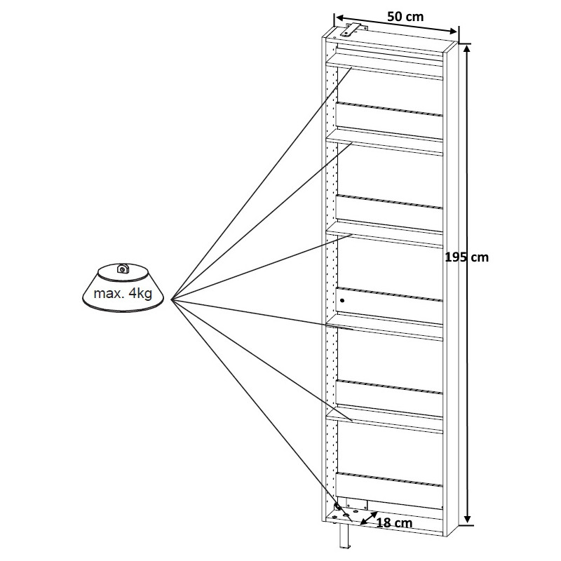 Grâce à ses dimensions compactes (50 cm de longueur, 195 cm de hauteur et 18 cm de profondeur), cette armoire à chaussures est un vrai allié des petits espaces. Derrière sa porte battante, vous trouverez un aménagement intérieur astucieux avec une étagère fixe et cinq étagères réglables pour un rangement totalement modulable. Ce meuble à chaussures a été conçu pour s’adapter à vos besoins, que ce soit pour une famille nombreuse ou un usage individuel.
