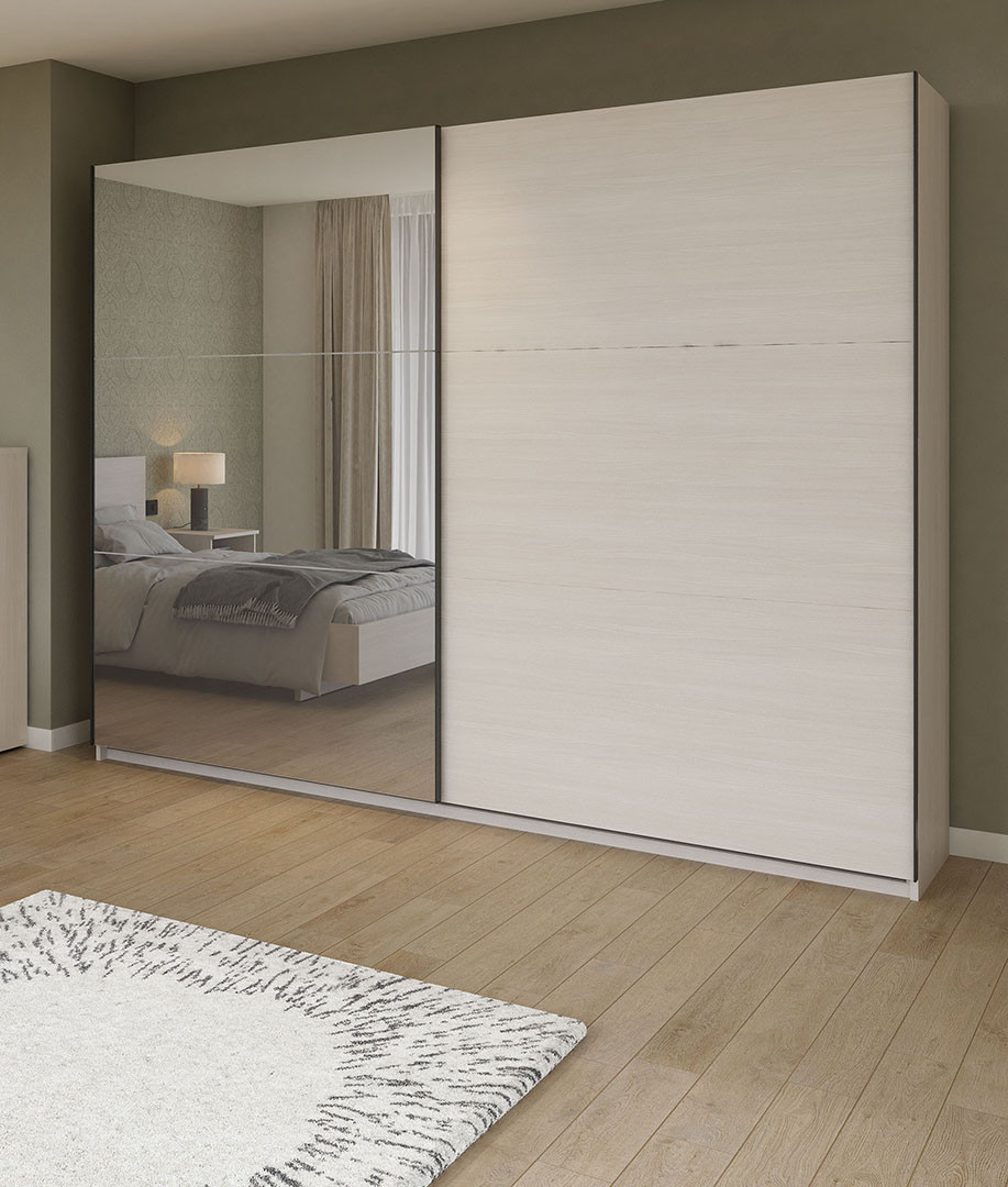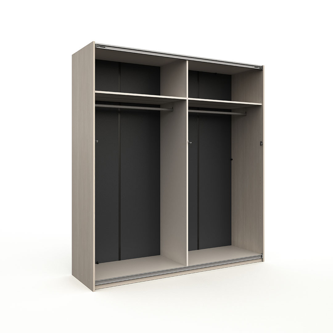 La conception de cette armoire à portes coulissantes a été pensée pour répondre aux besoins des utilisateurs modernes en quête de solutions de rangement fonctionnelles. Le système de portes coulissantes constitue un atout majeur, particulièrement dans les chambres où chaque centimètre compte, puisqu'il ne nécessite aucun débattement et permet d'installer votre meuble même dans les espaces restreints. Les deux grandes portes glissent avec fluidité, offrant un accès pratique à vos vêtements et effets personnels tout en préservant l'esthétique épurée caractéristique du style contemporain.