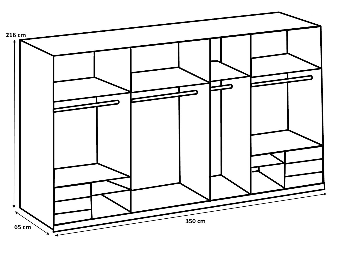 À l’intérieur, cette armoire de chambre dévoile un agencement astucieux qui facilite l’organisation. Elle propose quatre compartiments bien pensés, chacun équipé d’une penderie et d’une étagère pour accueillir vos vêtements et accessoires. Les six tiroirs intégrés ajoutent une touche de praticité, vous permettant de tout ranger à portée de main. Son design contemporain et sa silhouette épurée en font bien plus qu’un simple meuble : c’est un élément clé de votre espace, alliant fonctionnalité et esthétisme. Fini le désordre, place à une organisation parfaite et à une chambre ordonnée !
