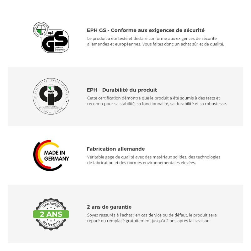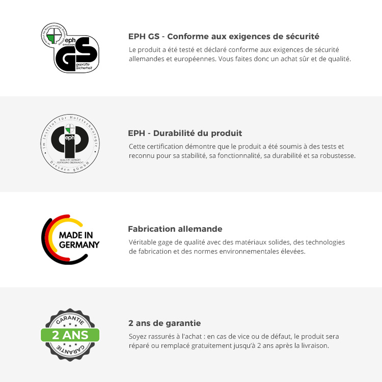 | Montage | Assemblage aisé à l'aide de la notice jointe |