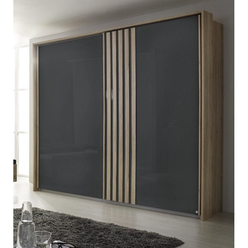 Haute de 2,14 mètres, cette armoire est disponible en deux largeurs pour s’adapter aux dimensions de la chambre parentale. Ornée d’un cadre en relief supportant les portes coulissantes, elle affirme son style contemporain avec des façades unies décorées. Un jeu de lattes verticales reproduit le veinage du chêne pour un effet matière réaliste et facilite la manipulation. Les matériaux de première qualité garantissent la solidité du meuble dans le temps et une bonne résistance aux rayures. Choisissez les façades blanc ou gris foncé en fonction de votre décor.