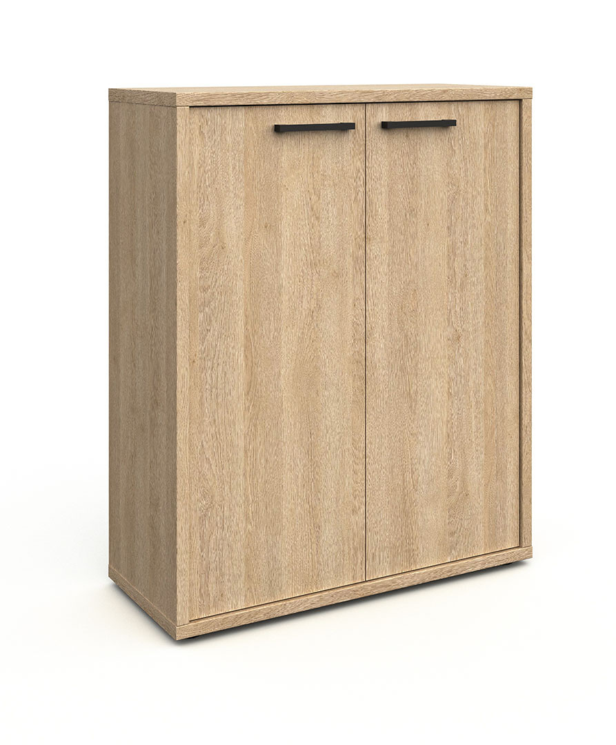 Avec ses dimensions compactes de 90 cm de longueur, 112 cm de hauteur et 40 cm de profondeur, cette armoire de bureau professionnelle s'intègre facilement dans les petits espaces tout en offrant une capacité de rangement optimale. Elle dispose de deux portes battantes qui protègent efficacement vos documents tout en apportant une touche de sobriété à votre intérieur. La finition mélaminée en chêne sable apporte une touche chaleureuse et naturelle, parfaite pour créer un environnement de travail accueillant et professionnel.