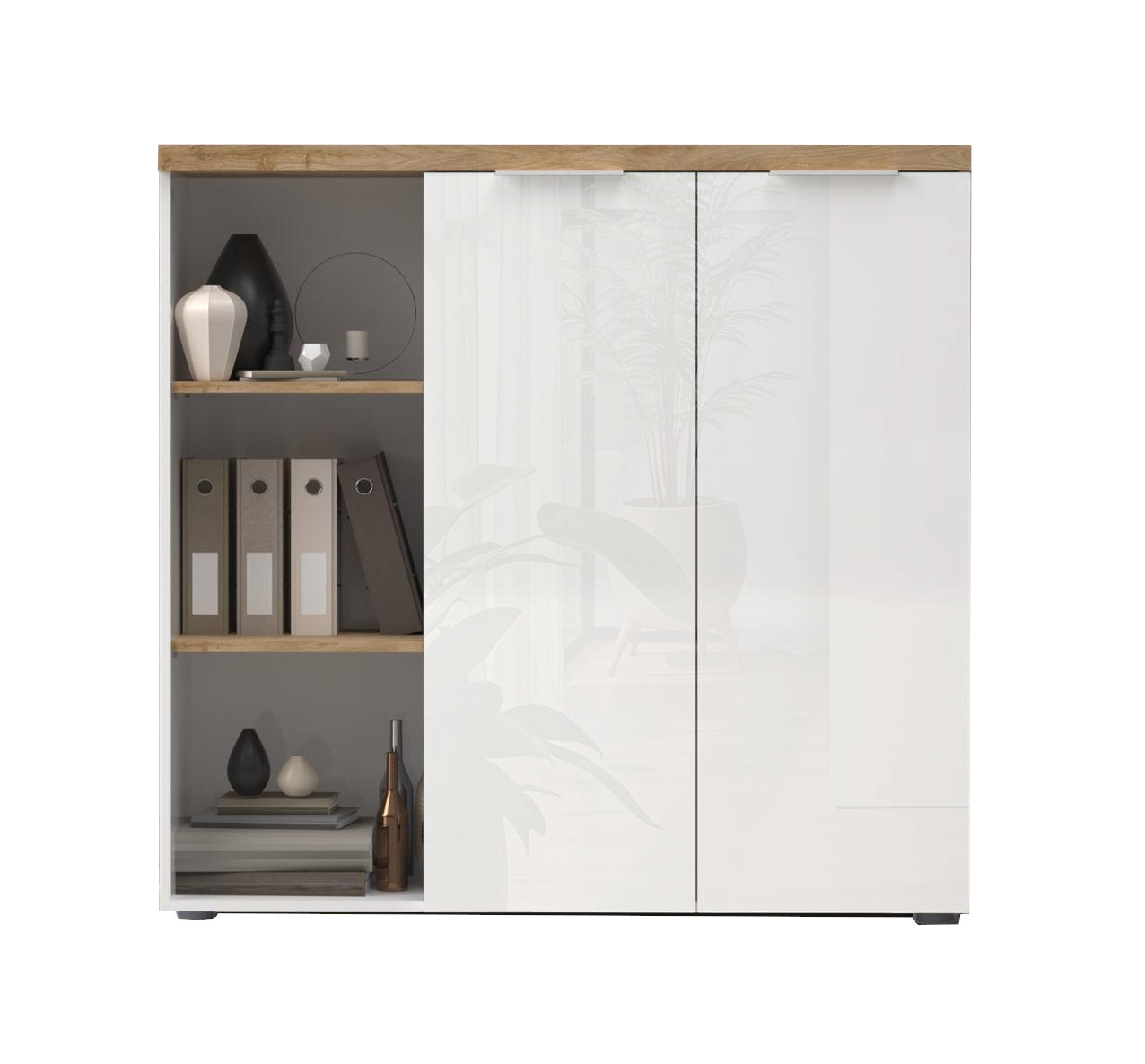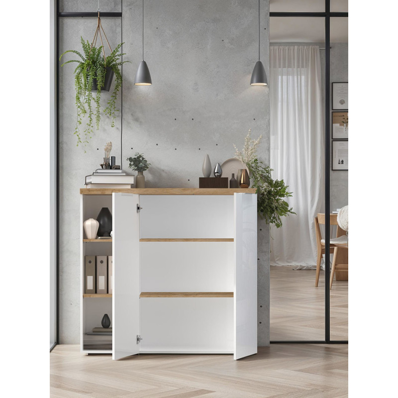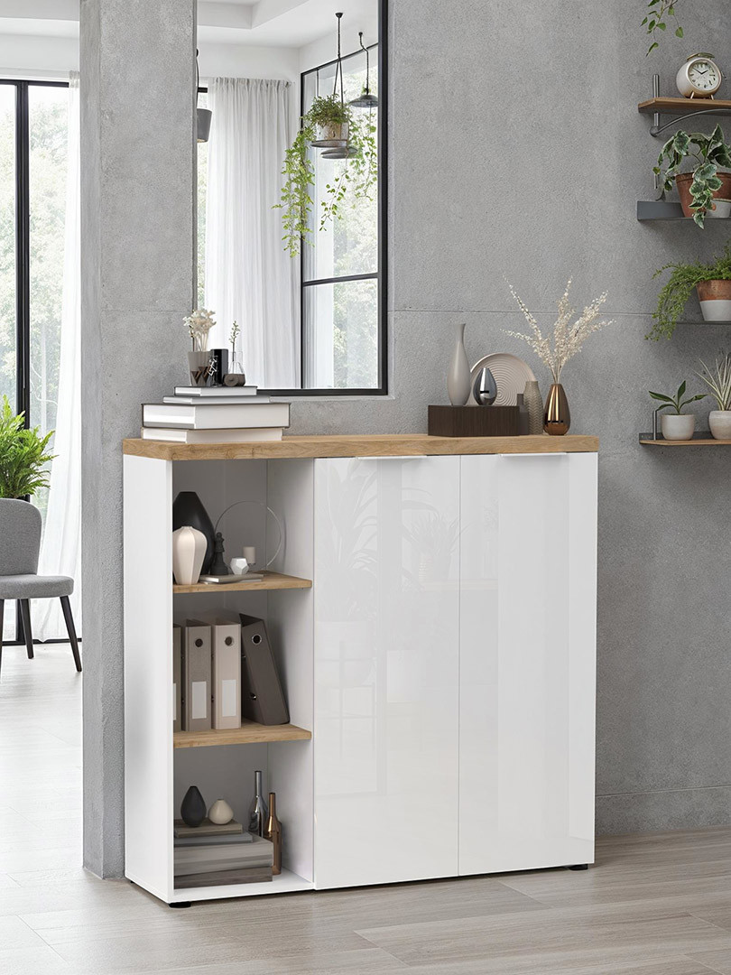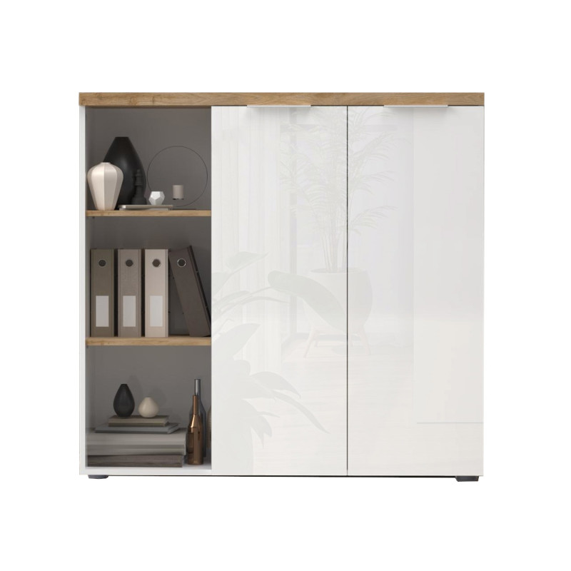 Armoire de bureau moderne H 115 cm blanc laqué/chêne Daisy | ![]() | Longueur: 80 cm Hauteur: 115 cm Profondeur: 34 cm | En stock 3 à 4 semaines | 225 € 00 | ||