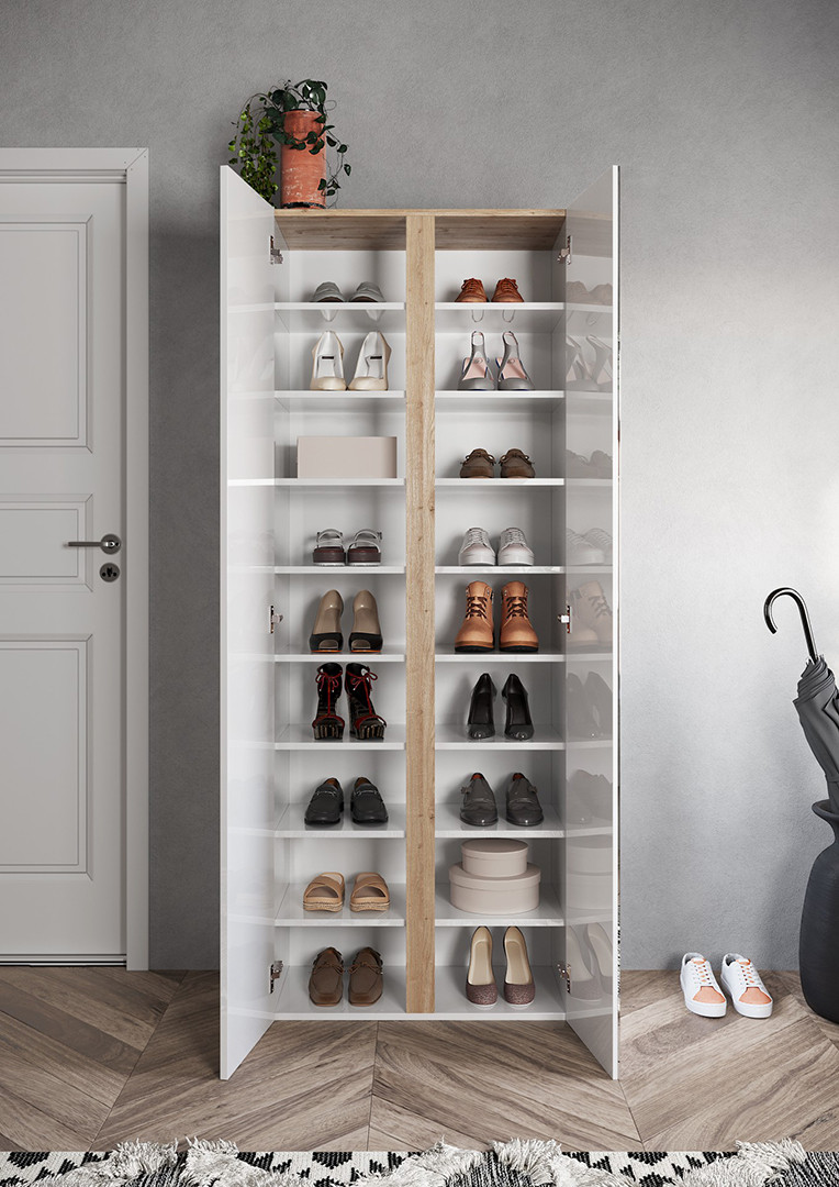 | Meuble à chaussures moderne 70 cm blanc laqué/chêne clair Frida | | Longueur: 70 cm Hauteur: 111 cm Profondeur: 35 cm | En stock 3 à 4 semaines | 167 € 99 | ||