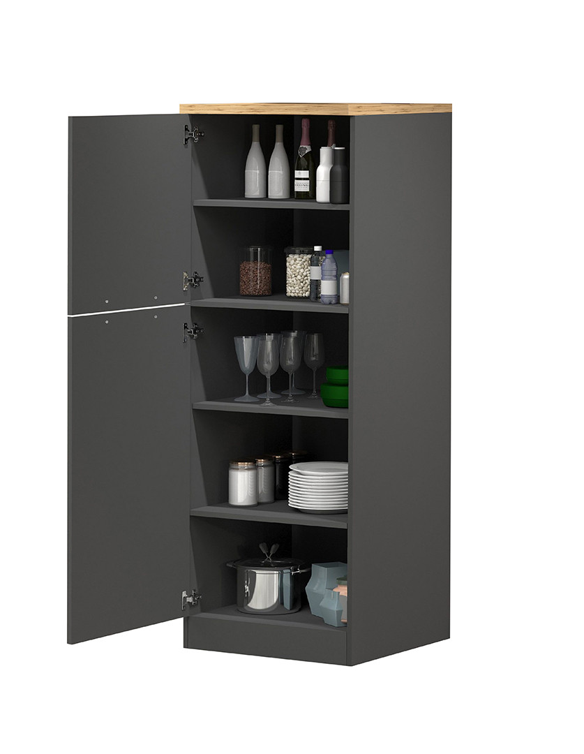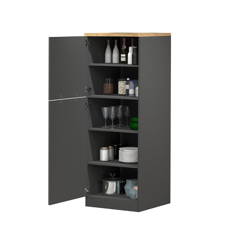 Fabriquée en Italie par la marque Deladeco, cette armoire de rangement au style résolument moderne allie esthétisme et robustesse pour répondre aux exigences des cuisines contemporaines. Son coloris anthracite mat associé au chêne wotan crée un contraste saisissant, apportant une touche de sophistication à votre espace de vie. Avec ses dimensions généreuses de 60 cm de largeur, 165 cm de hauteur et 60 cm de profondeur, elle s'intègre harmonieusement dans tout type de cuisine, qu'elle soit ouverte ou fermée.