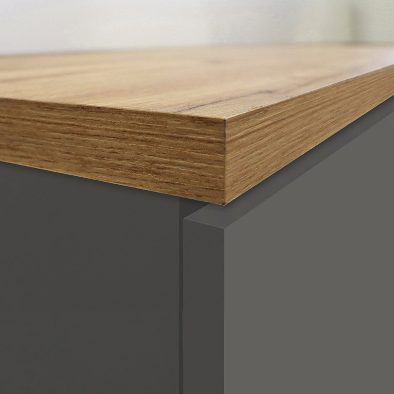| Structure | Panneaux de particules mélaminés de première qualité de 16 mm d'épaisseur - plateau 25 mm avec chants ABS - poignées en aluminium |
