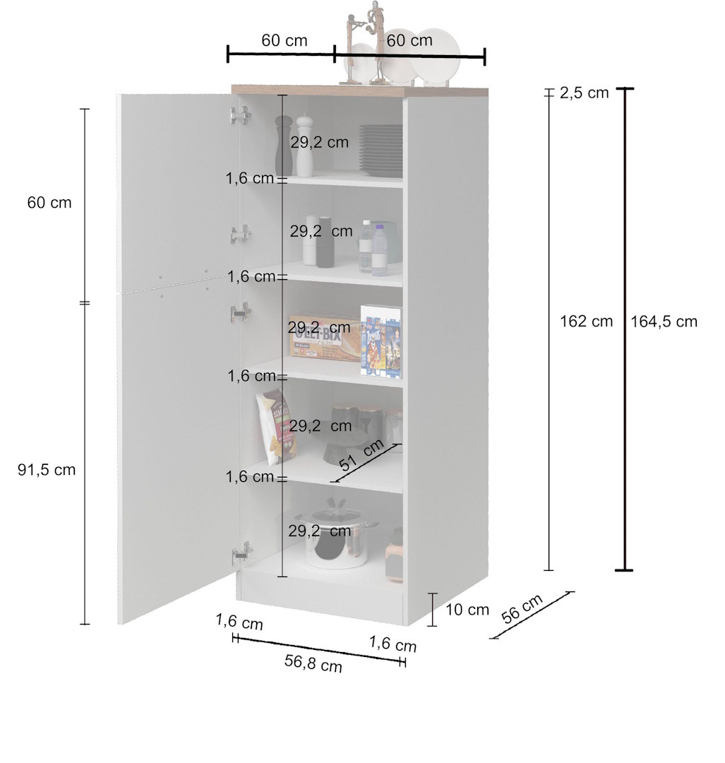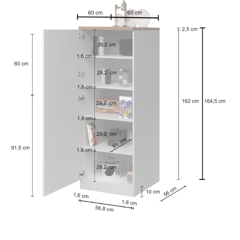 La qualité de fabrication de ce meuble de rangement cuisine se reflète dans chaque détail de sa structure. Conçu à partir de panneaux de particules mélaminés de première qualité de 16 mm d'épaisseur, son plateau renforcé de 25 mm avec chants ABS garantit une solidité à toute épreuve. En tant que véritable meuble de rangement haut de gamme, il est doté de poignées en aluminium au design épuré et d'un piétement en PVC assurant une parfaite stabilité sur tout type de revêtement de sol.