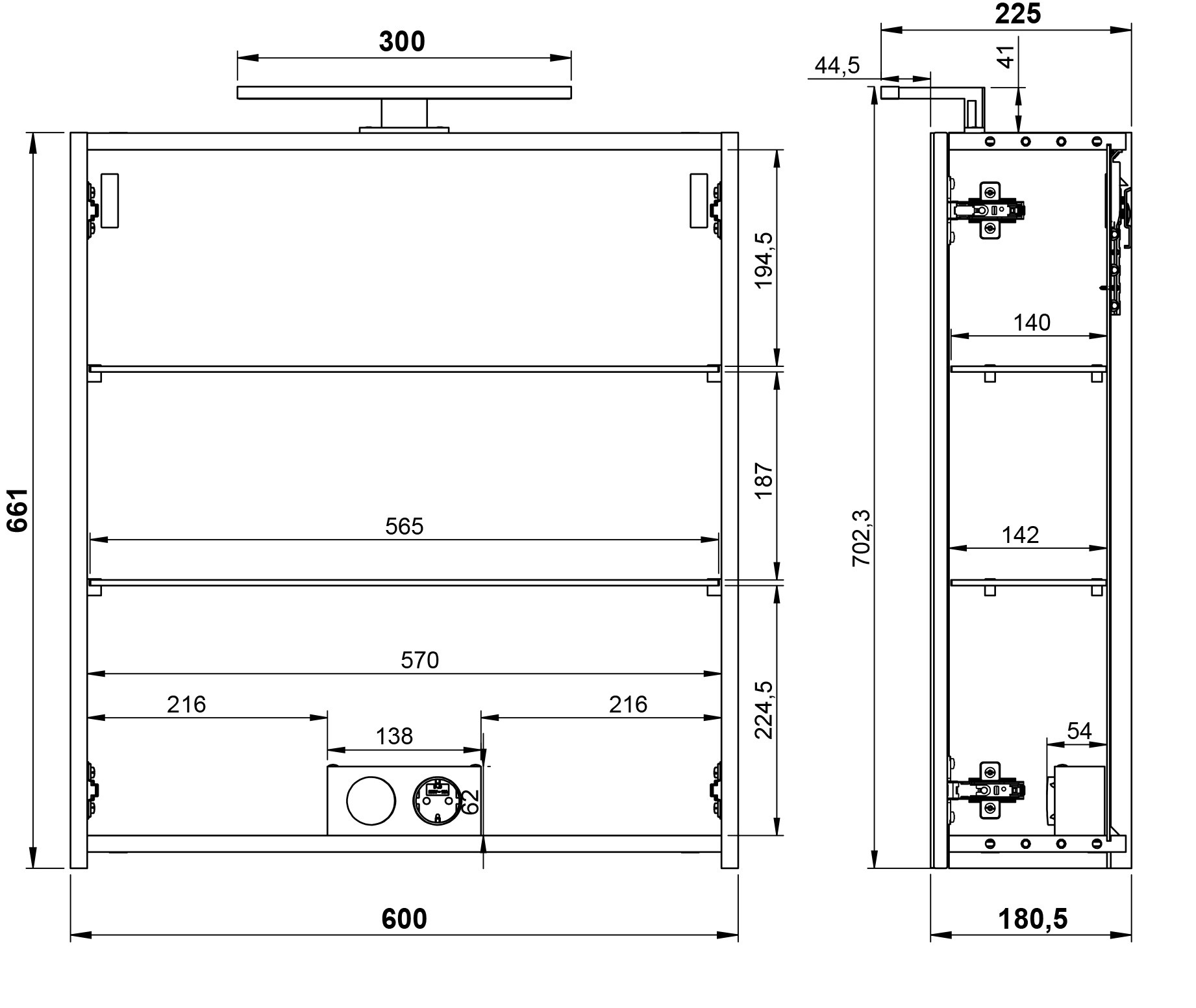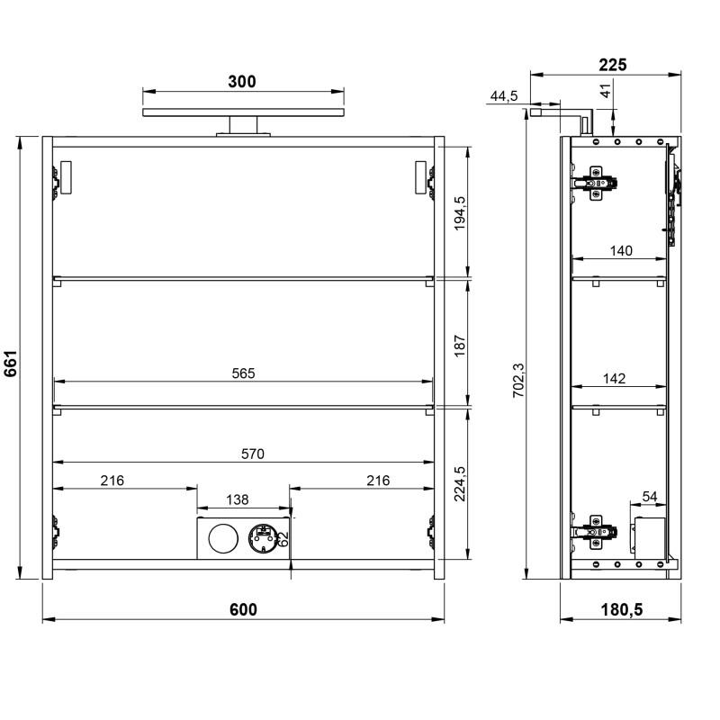 Structure | Panneaux de particules mélaminés de haute qualité - chants ABS de haute qualité - poignées en métal |