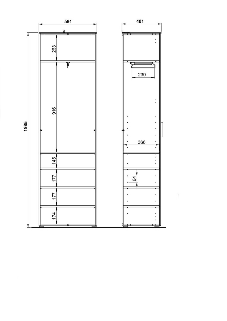 | Aménagement intérieur | Cinq étagères dont 4 réglables (charge 10 kg) - une tringle (charge 7 kg) |