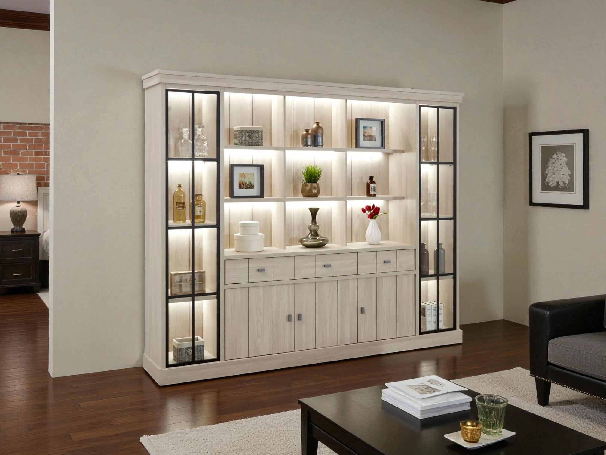 Mais cette bibliothèque, c’est bien plus qu’un simple meuble déco ! C’est aussi un meuble de rangement ultra pratique et robuste, parfait pour organiser toutes vos affaires sans compromettre l’esthétique de votre intérieur. Avec son éclairage LED inclus, elle sublime vos objets exposés en leur apportant une lumière chaleureuse et élégante. Que vous y placiez des livres, des cadres photo ou encore des sculptures contemporaines, elle saura les mettre en valeur de la plus belle façon.