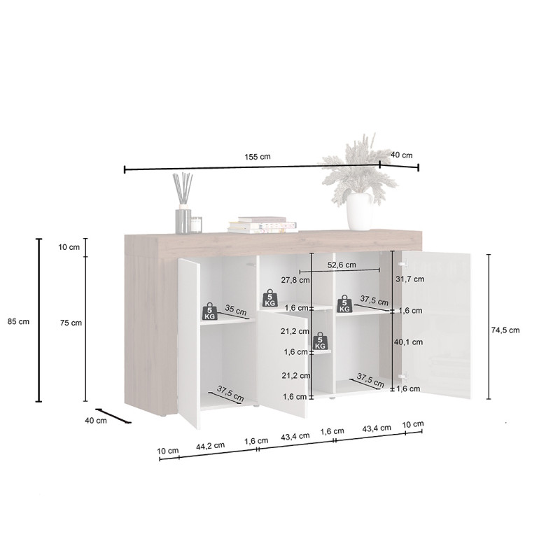 Véritable buffet/bahut contemporain, le Neros séduit par la sobriété de ses lignes épurées et la qualité de sa conception italienne. Ses trois portes battantes s'ouvrent sur de généreux espaces de rangement, idéaux pour y accueillir vaisselle, nappes, accessoires de table ou objets décoratifs. Ce bahut moderne et contemporain répond aux exigences des intérieurs d'aujourd'hui, où le design doit s'accorder avec la praticité sans jamais la sacrifier. La finition mélaminée garantit par ailleurs une excellente résistance aux rayures et aux chocs du quotidien.