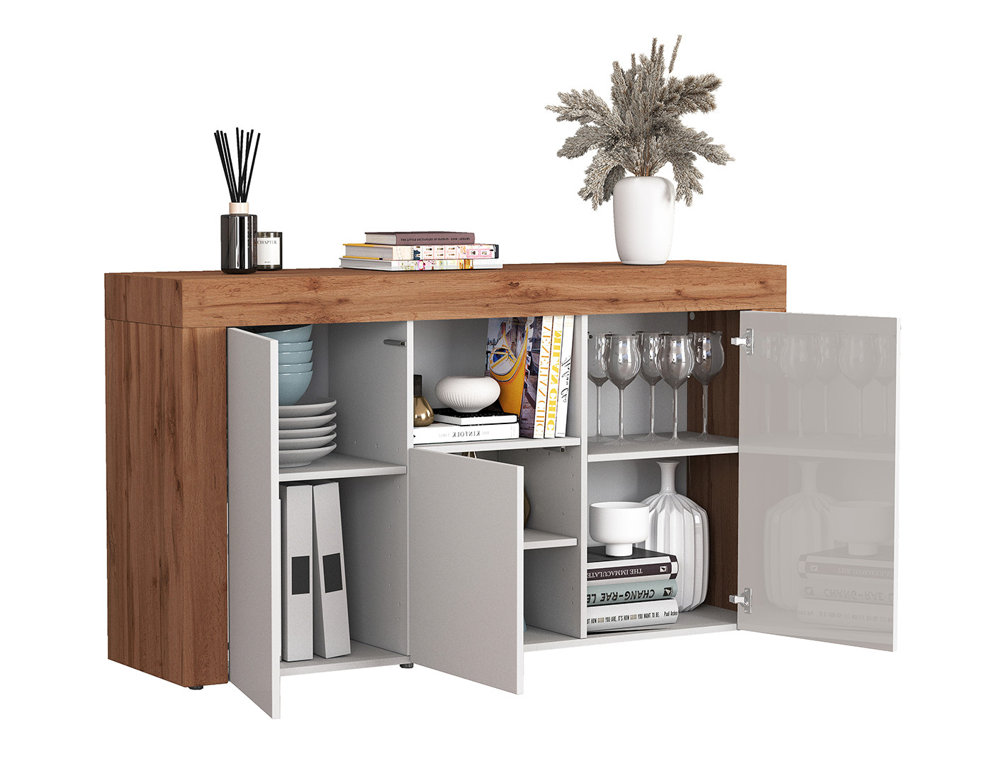 | Buffet haut contemporain blanc brillant/chêne wotan Neros | | Longueur: 140 cm Hauteur: 130 cm Profondeur: 40 cm | En stock 48 à 72h | 609 € 99 | ||
