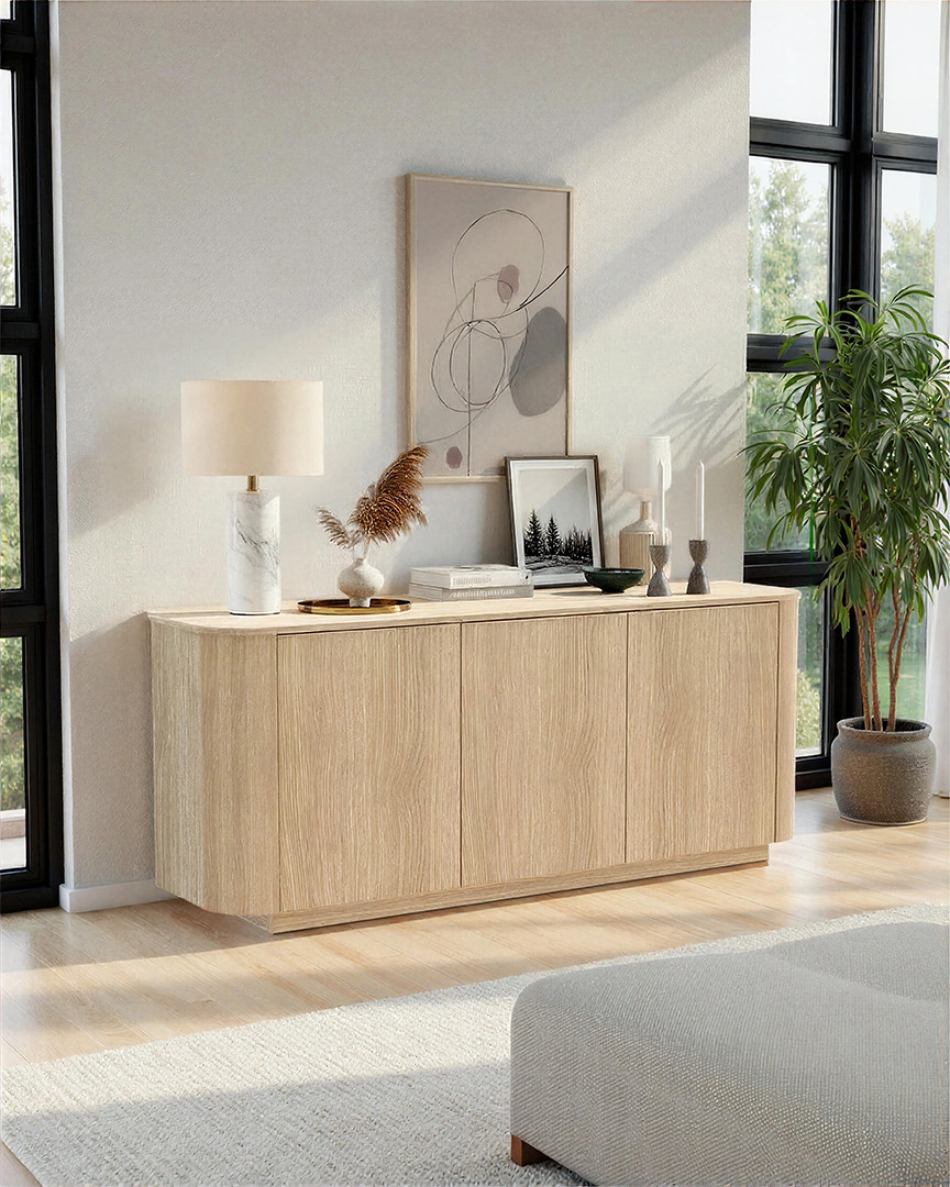Son agencement interne est idéal pour ranger vaisselle, linge de table ou accessoires de décoration, répondant ainsi aux attentes de celles et ceux qui recherchent un véritable meuble de rangement polyvalent. Grâce à son design contemporain, il s'harmonise facilement avec différents styles décoratifs, qu'ils soient minimalistes, nordiques ou plus classiques. Vous pouvez également l’associer à d'autres éléments de la même collection ou le combiner avec des pièces existantes de votre intérieur pour créer une atmosphère cohérente et accueillante. Il constitue également une alternative élégante dans le choix d’un bahut/buffet polyvalent.