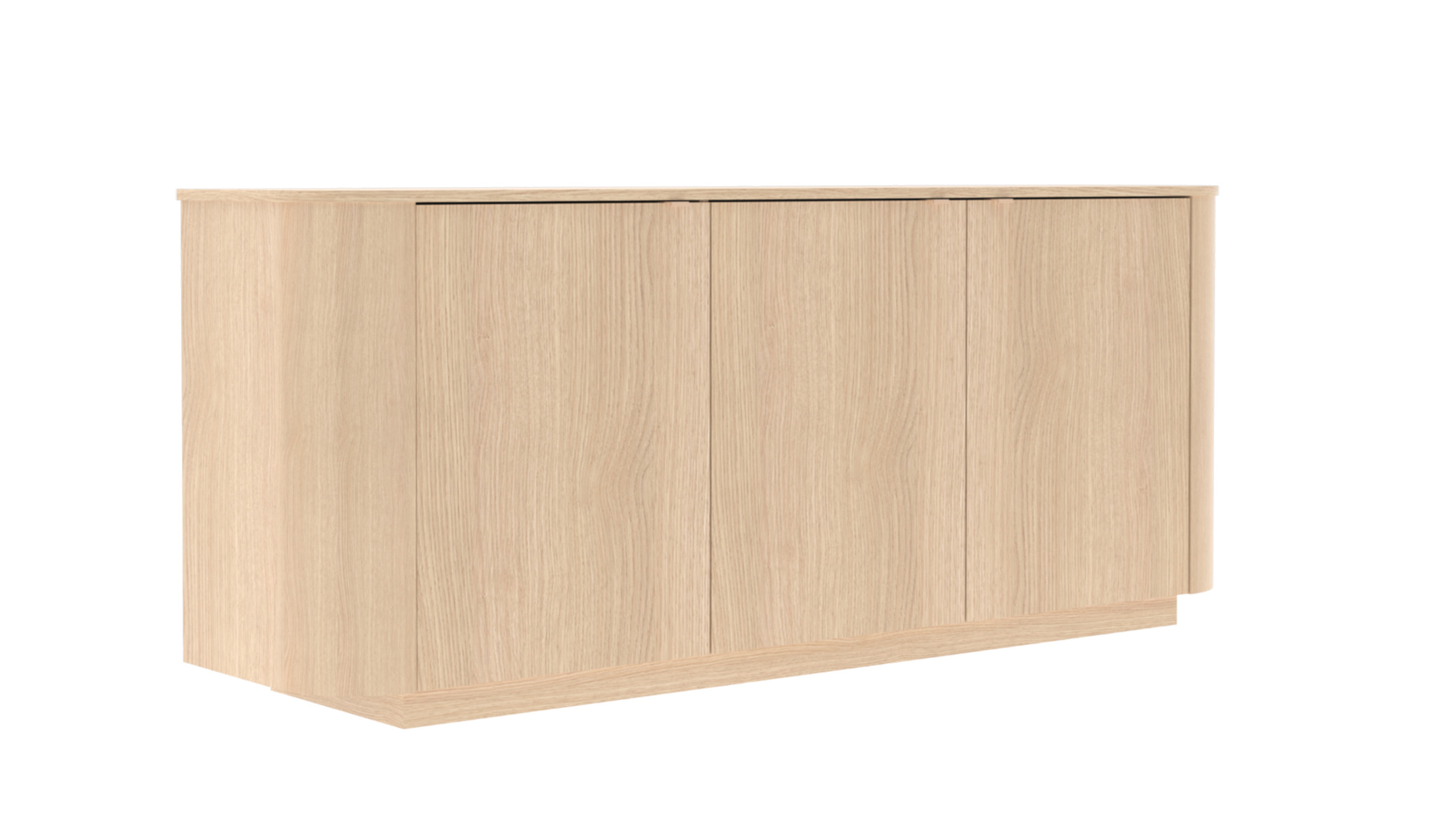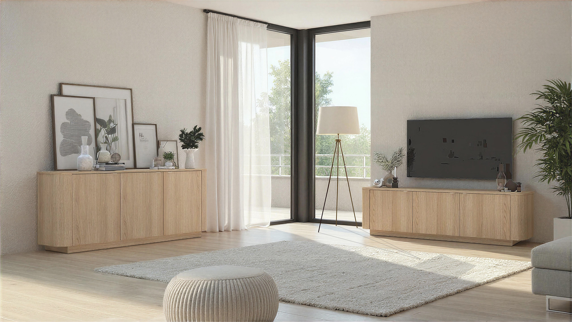 Sa structure en panneaux de particules mélaminés de première qualité de 16 mm garantit robustesse et longévité, soutenue par un socle en mélamine de 6,5 cm et des poignées métalliques apportant une touche de sophistication. Ce modèle, véritable buffet/bahut contemporain, présente une finition mélaminée soignée, idéale pour résister au quotidien tout en gardant son allure chaleureuse de chêne clair. Les trois portes battantes offrent une ouverture fluide et agréable, révélant un espace intérieur optimisé qui répond parfaitement aux besoins des familles modernes. Ce meuble, pensé pour durer, repose sur une conception solide et maîtrisée, caractéristique du savoir-faire italien.