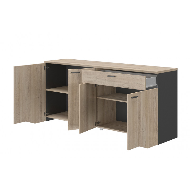 Ses dimensions à la fois contenues et généreuses offrent un bel espace de rangement grâce à ses quatre grands compartiments et son large tiroir. Stocker soigneusement votre vaisselle sans devoir tout empiler sera un véritable jeu d'enfant pour vous désormais.
