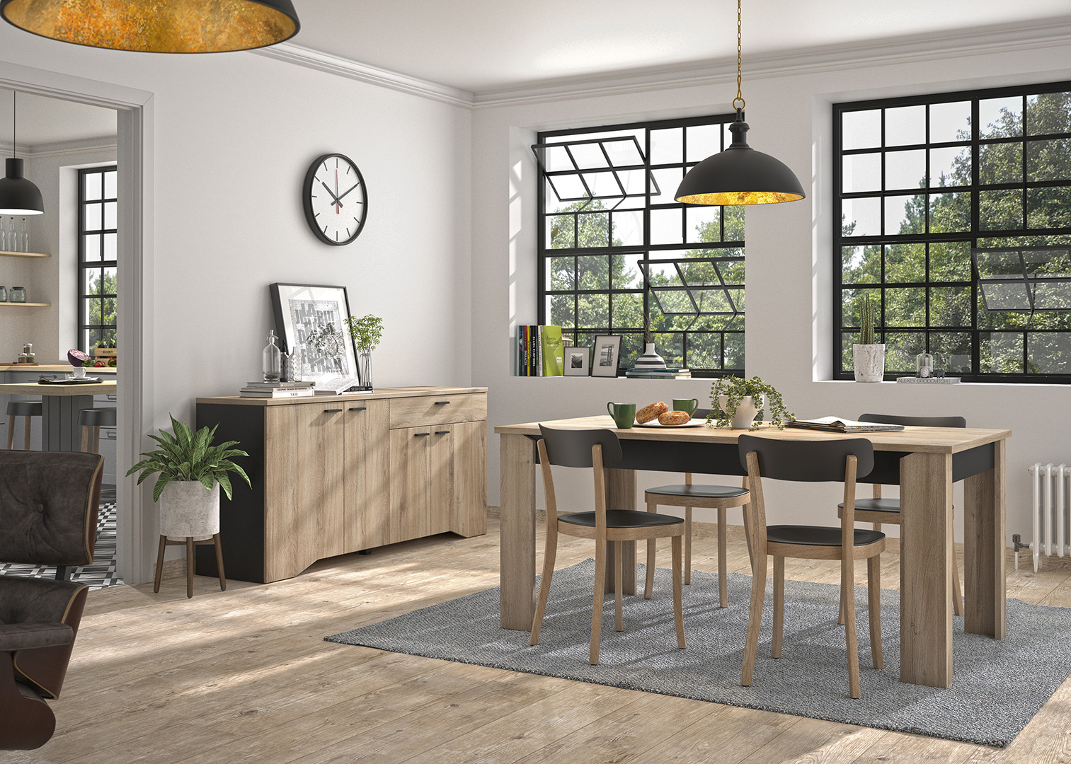 Pour un ensemble harmonieux dans votre pièce, la table de salle à manger Heston est également disponible sur notre site.