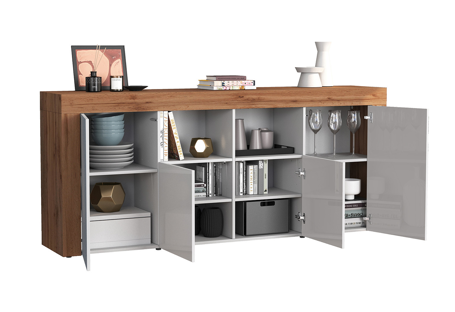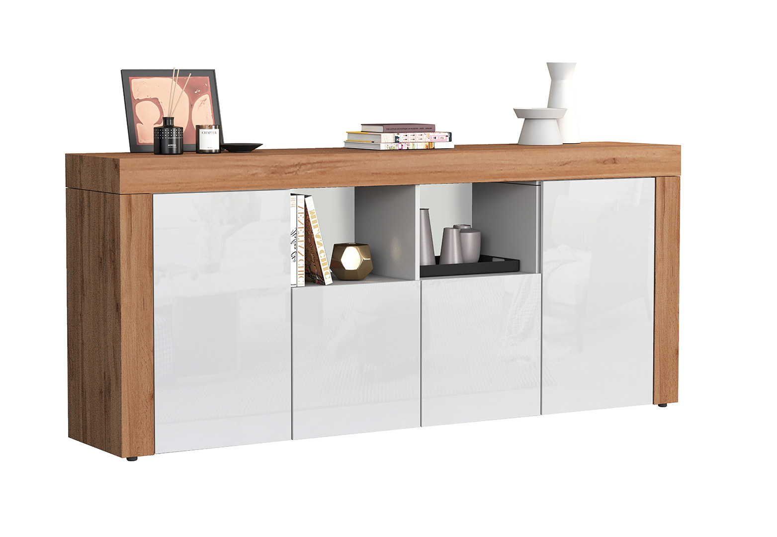 | Buffet haut contemporain blanc brillant/chêne wotan Neros | | Longueur: 140 cm Hauteur: 130 cm Profondeur: 40 cm | En stock 48 à 72h | 609 € 99 | ||