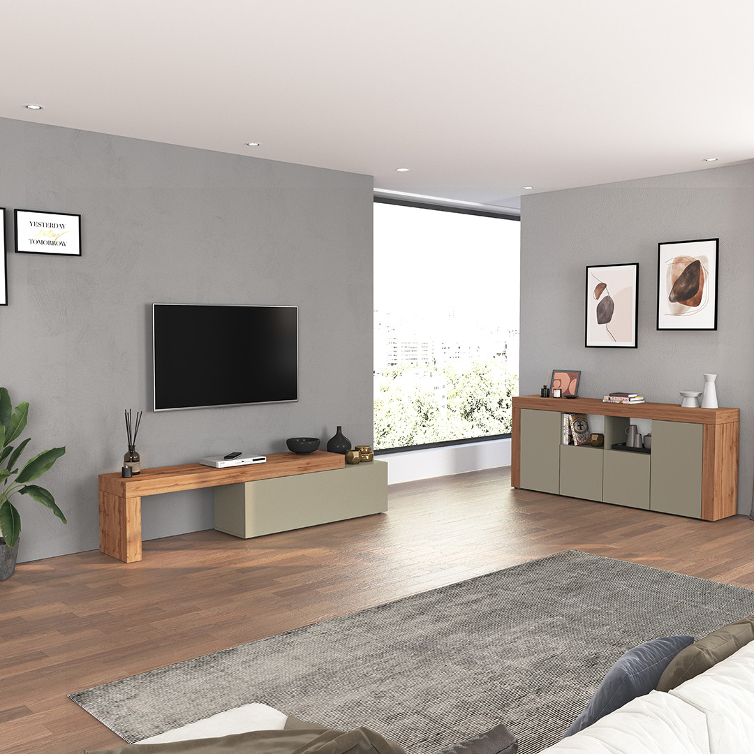 | Meuble TV extensible 180/290 cm taupe/chêne wotan Neros | | Longueur: 180/290 cm Hauteur: 51 cm Profondeur: 40 cm | En stock 48 à 72h | 395 € 00 |