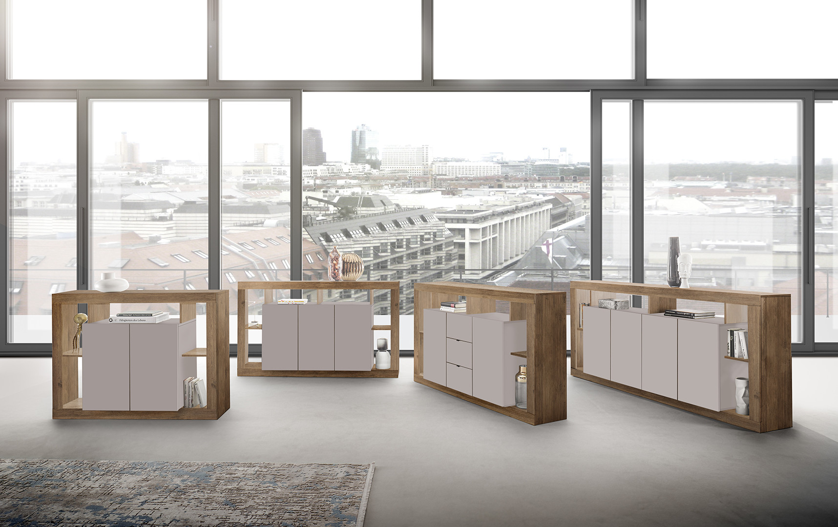 | Meuble TV contemporain 172 cm mercure/cachemire Dominika | | Longueur: 172 cm Hauteur: 66 cm Profondeur: 40 cm | En stock 3 à 4 semaines | 244 € 00 |