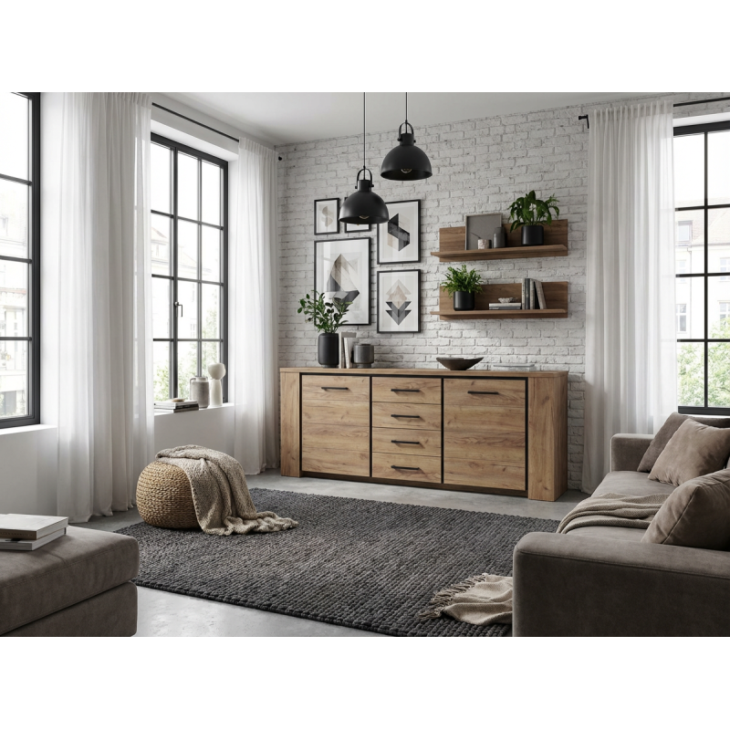Envie d'un meuble qui allie design contemporain et fonctionnalité pour sublimer votre salle à manger ? Le buffet Barbara de la marque Deladeco est exactement ce qu’il vous faut ! Fabriqué en Belgique avec des panneaux de particules de haute qualité, ce meuble séduit par sa finition en chêne français qui ajoute une touche chaleureuse et authentique à votre intérieur. Avec ses dimensions généreuses de 220 cm de long, 89 cm de haut et 45 cm de profondeur, ce buffet/bahut est pensé pour allier esthétique et praticité, tout en attirant tous les regards dans votre pièce.