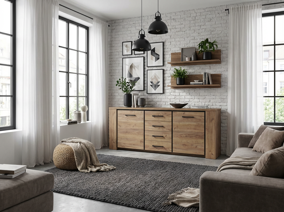 Grâce à ses deux portes battantes et quatre tiroirs, ce bahut vous offre un rangement optimal pour organiser facilement votre vaisselle, vos couverts ou vos accessoires de salle à manger. Les deux étagères intégrées sont parfaites pour garder à portée de main vos objets du quotidien. Que vous soyez à la recherche d’un bahut, buffet et enfilade ou d’un élément décoratif moderne, le modèle Barbara coche toutes les cases.