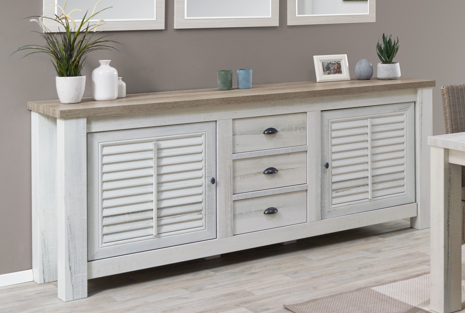 Plongez dans le style scandinave avec le buffet/bahut contemporain Tapagos. Sa structure est fabriquée en panneaux alvéolaires 100% mélaminés. Le panneau alveolaire a la particularité d'être hyper solide et très léger à la fois. Il se compose de deux portes comprenant chacune une étagère intérieure et de trois tiroirs centraux montés sur coulisses métalliques. Pour un ensemble harmonieux, optez pour les autres meubles de la gamme Tapagos vendus séparément.