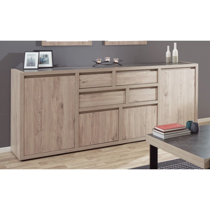 Adoptez un style épuré et chaleureux dans votre intérieur avec le buffet/bahut contemporain California. Sa structure est fabriquée en panneaux alvéolaires 100% mélaminés. Le panneau alveolaire a la particularité d'être hyper solide et très léger à la fois. Il se compose de quatre portes et de quatre tiroirs montés sur coulisses métalliques. Pour un ensemble harmonieux, optez pour les autres meubles de la gamme California vendus séparément.