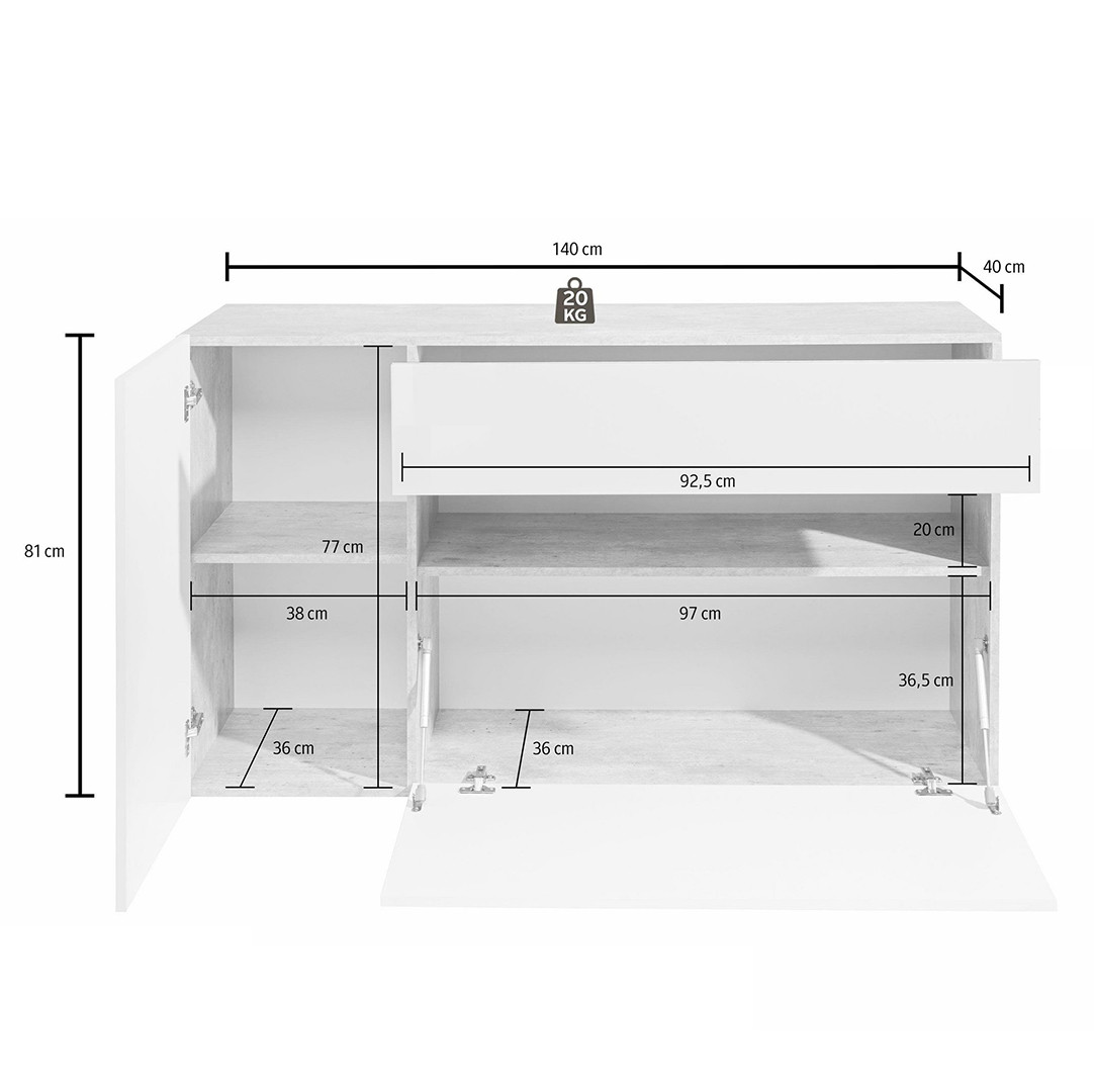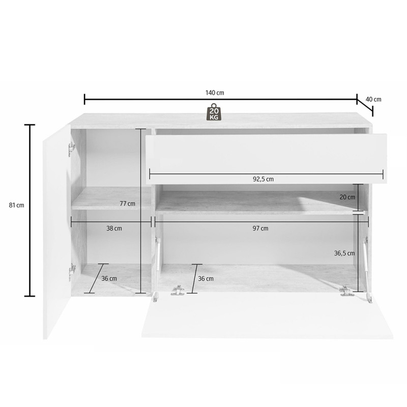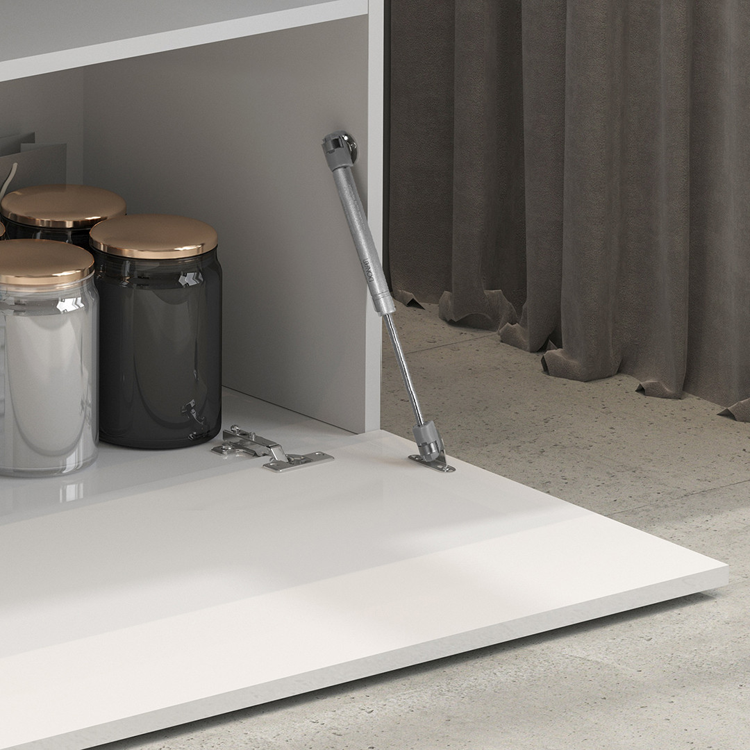| Structure | Panneaux de particules mélaminés de première qualité 16 mm - corps du meuble blanc mat - façades blanc brillant |