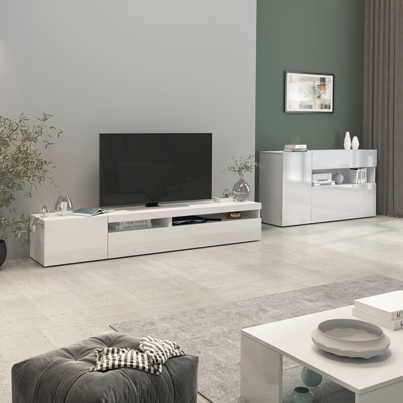 | Meuble TV moderne 260 cm blanc brillant Enaya | | Longueur: 260 cm Hauteur: 36 cm Profondeur: 40 cm | En stock 48 à 72h | 395 € 00 | ||