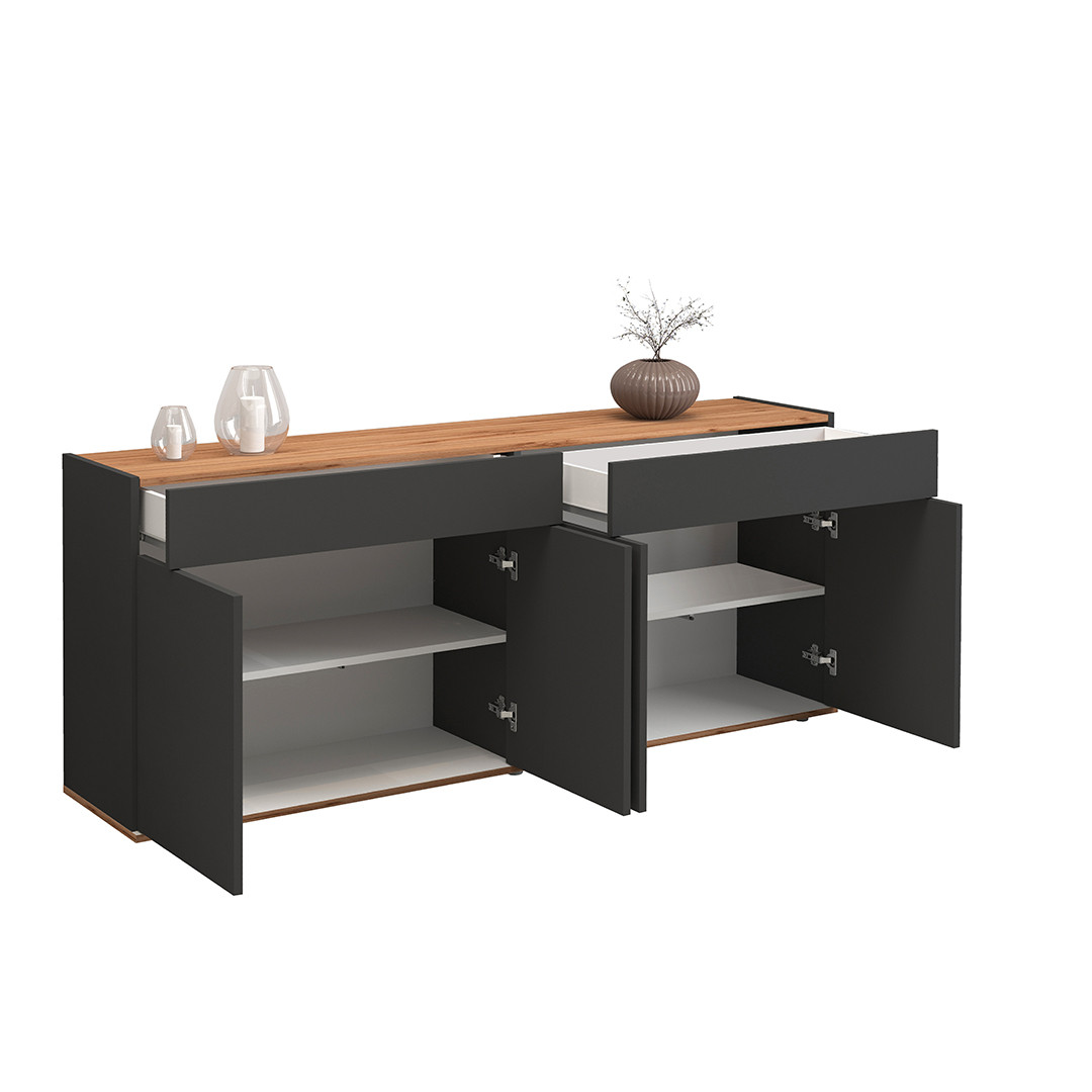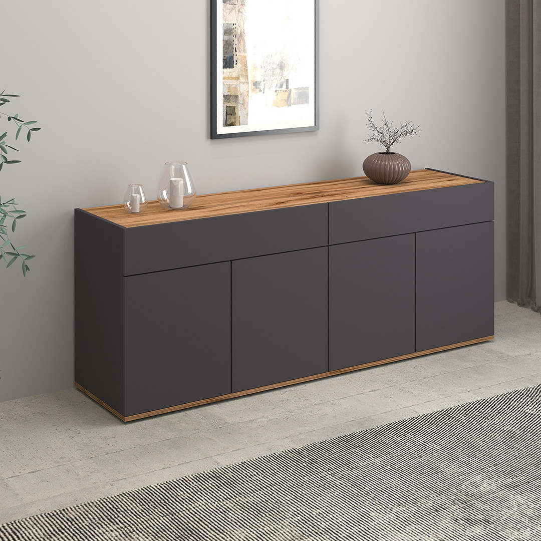 | Buffet/bahut moderne 200 cm anthracite mat/chêne wotan Grana | | Longueur: 200 cm Hauteur: 70 cm Profondeur: 35 cm | En stock 48 à 72h | 465 € 00 | ||