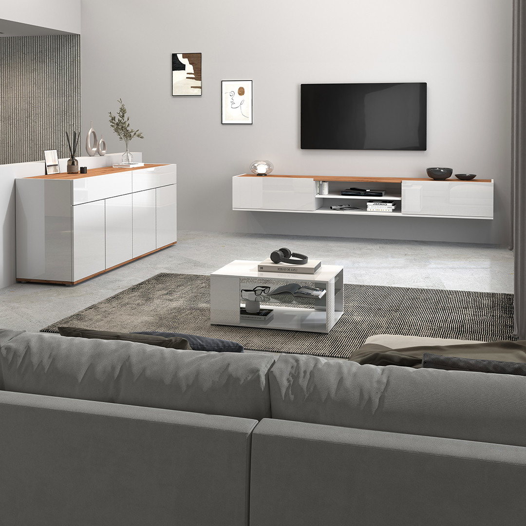 | Buffet/bahut moderne 200 cm blanc/chêne wotan Grana | | Longueur: 200 cm Hauteur: 70 cm Profondeur: 35 cm | En stock 48 à 72h | 465 € 00 | ||