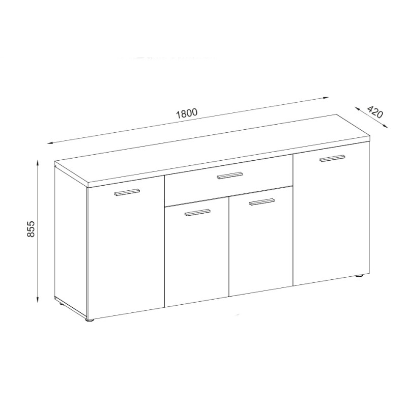 Avec sa longueur de 180 cm, sa hauteur de 84 cm et sa profondeur de 42 cm, ce mobilier offre un espace interne généreux, idéal pour organiser votre vaisselle, linge de table ou objets du quotidien. Ses quatre portes battantes et son tiroir central optimisent le rangement tout en conservant une apparence ordonnée. Grâce à ce buffet/bahut contemporain, vous bénéficiez d’un équilibre parfait entre esthétisme et praticité. Son piétement en PVC noir, d’une hauteur de 2 cm, assure stabilité et sobriété, contribuant à sa présence raffinée dans la pièce. Ce meuble s’intègre parfaitement dans les atmosphères modernes où dominent les lignes droites et les matériaux élégants comme le mélaminé.