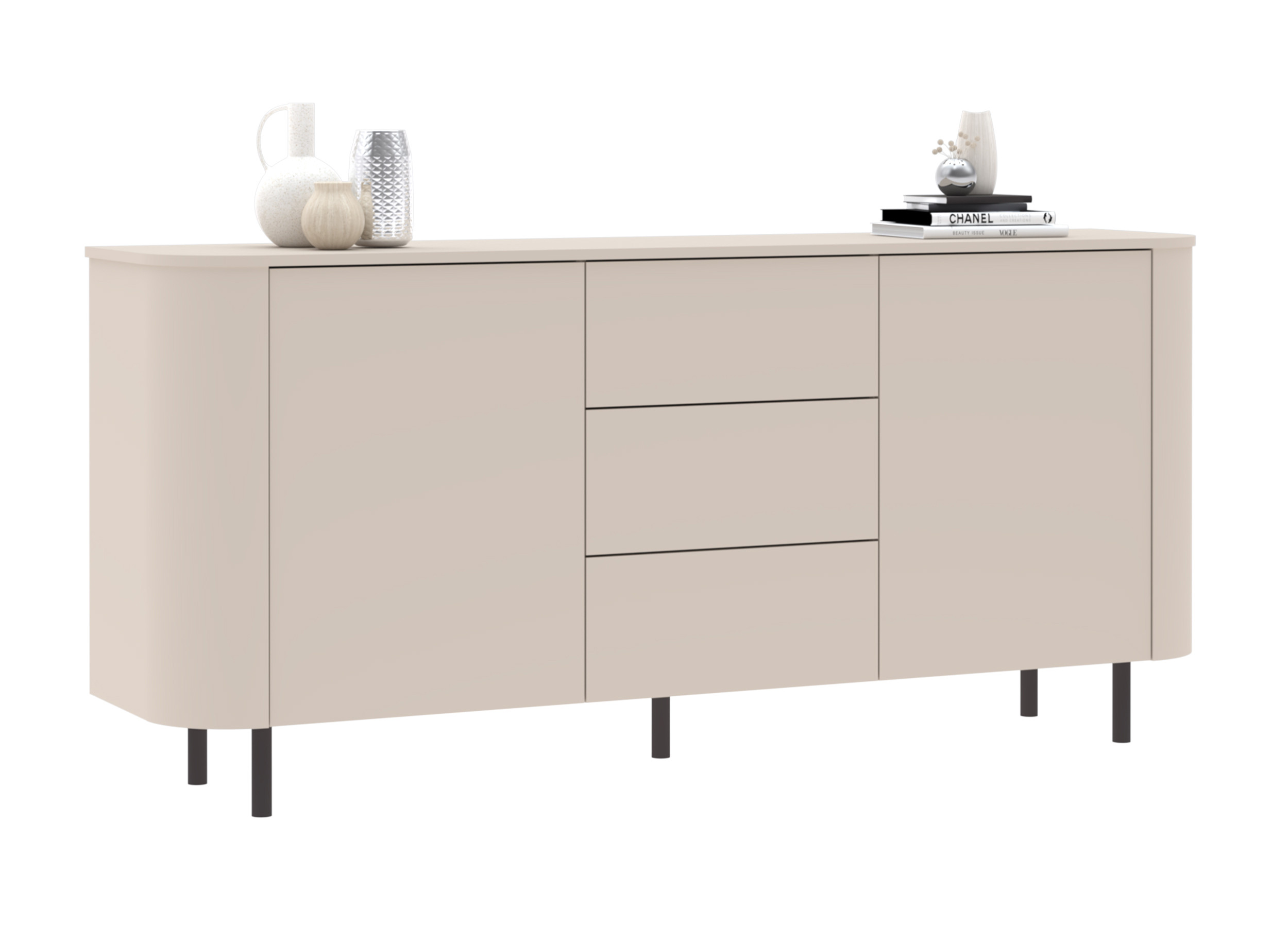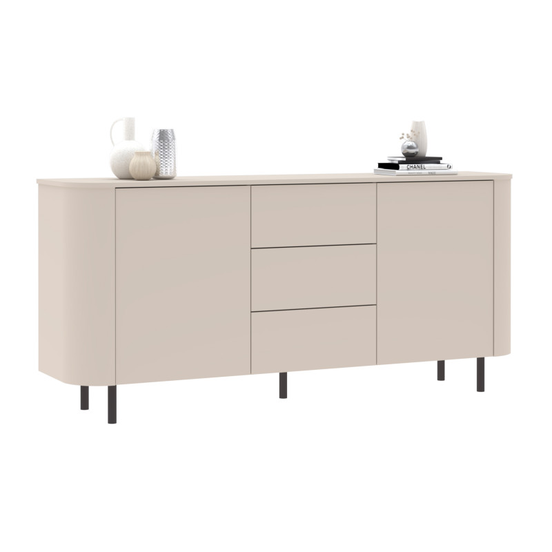 Ce meuble de rangement moderne a été pensé pour répondre aux besoins des foyers recherchant à la fois élégance et fonctionnalité. Doté d’une structure en panneaux de particules mélaminés de haute qualité de 16 mm et d’angles arrondis en MDF, il offre robustesse et durabilité au quotidien. Son piétement en métal noir d’une hauteur de 14 cm apporte une touche contemporaine et un contraste subtil au coloris cachemire mat. Avec deux portes battantes et trois tiroirs spacieux, il permet de ranger facilement vaisselle, linge de table ou accessoires divers, tout en conservant une apparence parfaitement ordonnée et design.