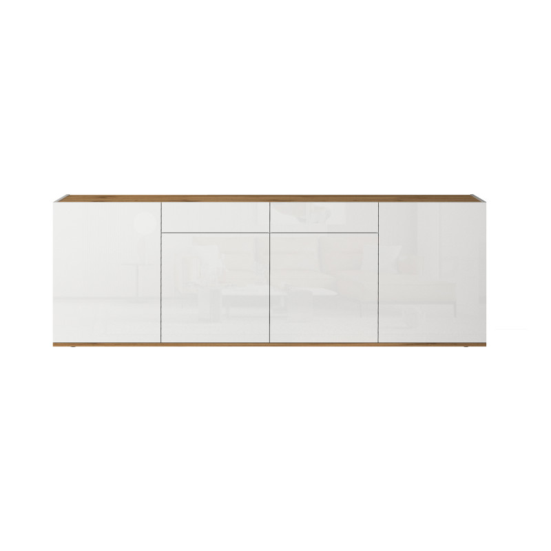 Sublimez votre intérieur avec ce superbe buffet/bahut de 200 cm signé Deladeco, conçu et fabriqué en Italie avec un soin tout particulier apporté aux matériaux et aux finitions. Son alliance de blanc brillant en façade et de chêne wotan lui confère un caractère résolument contemporain, capable de s'intégrer harmonieusement dans tous les espaces de vie. Ce meuble de rangement de salle à manger saura immédiatement devenir le point focal de votre pièce, apportant cette touche de modernité raffinée que vous recherchiez pour compléter votre décoration intérieure.