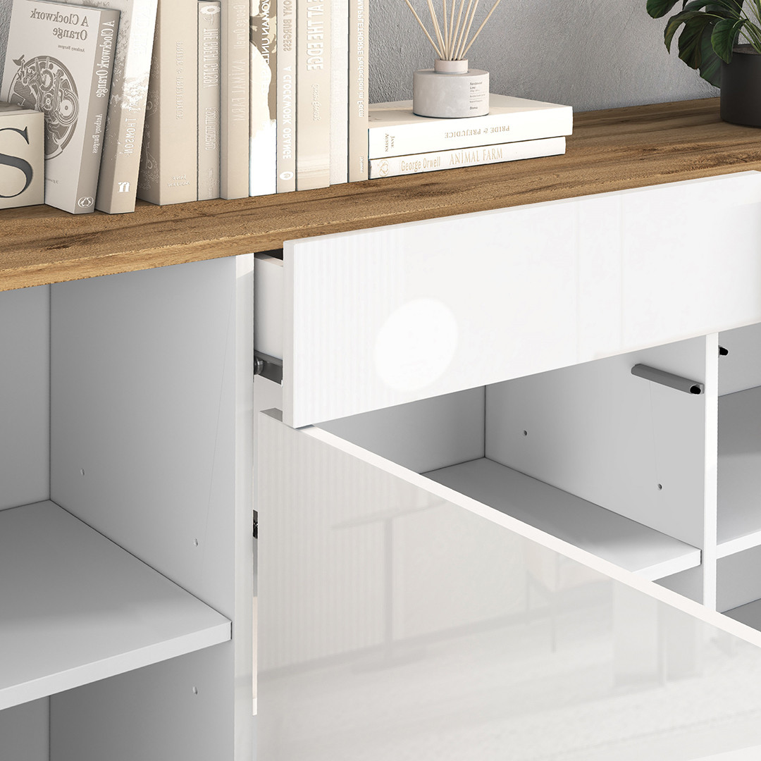 En matière de fonctionnalité, ce meuble de salle à manger a été pensé pour simplifier votre quotidien avec un système d'ouverture Push To Open sur ses 4 portes battantes et ses 2 tiroirs, permettant une utilisation fluide et intuitive sans poignées apparentes. Ce choix design préserve la pureté des lignes et renforce le caractère moderne du meuble. Les meuble de salle à manger de cette gamme se distinguent notamment par cette attention portée aux détails pratiques qui font toute la différence au quotidien. L'entretien est par ailleurs facilité : un simple chiffon doux et humide suffit pour conserver tout l'éclat de ses finitions.