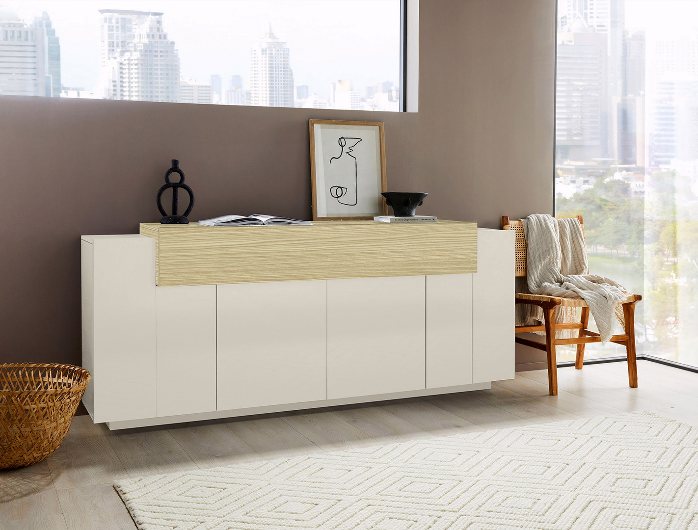 Plus qu’un simple meuble de rangement, ce buffet italien est un véritable atout esthétique dans un intérieur moderne. Sa couleur cachemire s’associe élégamment à l’aspect naturel du chêne, créant un contraste subtil qui apporte de la chaleur et de la personnalité à votre décoration. Son design sobre permet de l’associer aisément avec d’autres meubles du même style, tout en se démarquant par sa qualité de fabrication et son esprit fonctionnel. Le montage est aisé grâce à la notice fournie, rendant son installation simple et rapide même pour les moins expérimentés.