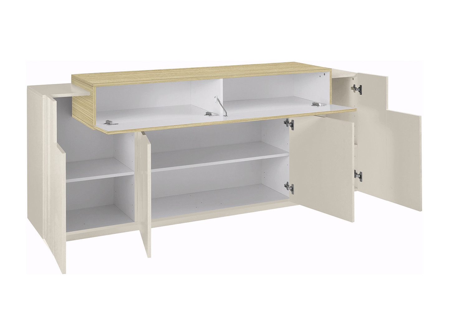 Ce buffet/bahut contemporain dispose de cinq portes battantes reposant sur des charnières métalliques robustes, assurant une ouverture fluide et durable. Derrière celles-ci se trouvent trois étagères pratiques, idéales pour organiser votre vaisselle, votre linge de table ou tout autre accessoire de salle à manger. Sa structure en panneaux de particules mélaminés de première qualité de 16 mm d'épaisseur garantit stabilité et longévité. La finition en mélaminé facilite quant à elle l'entretien quotidien, nécessitant simplement un chiffon doux et humide pour conserver tout son éclat.