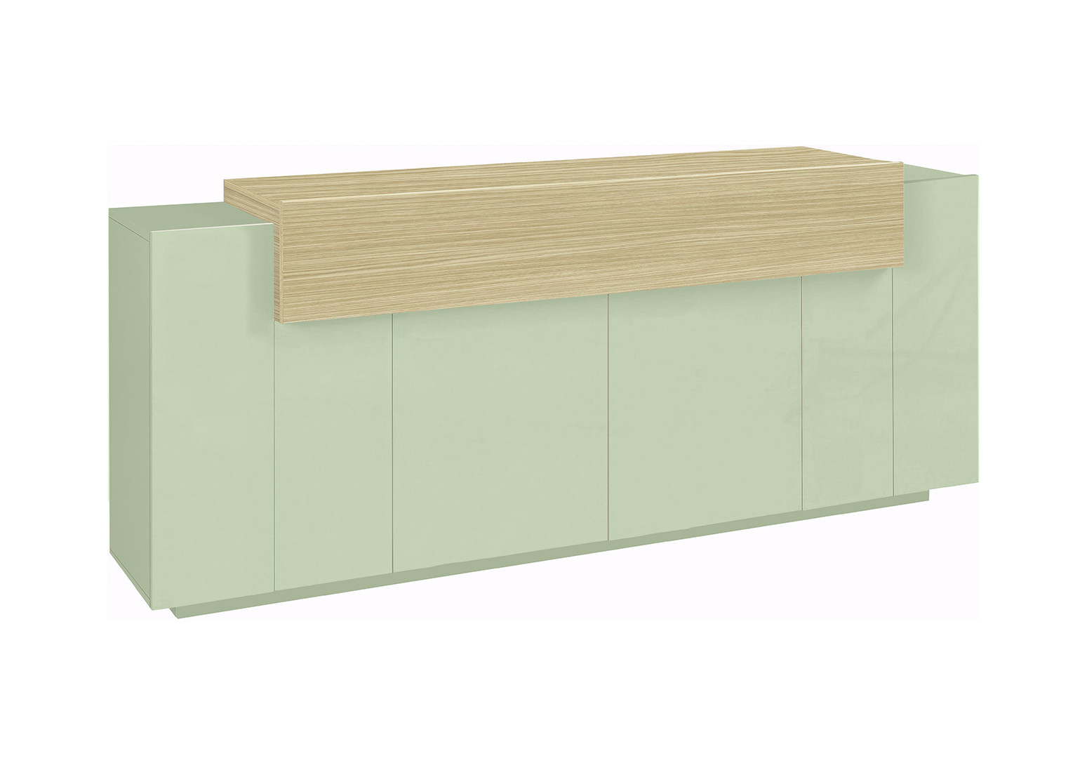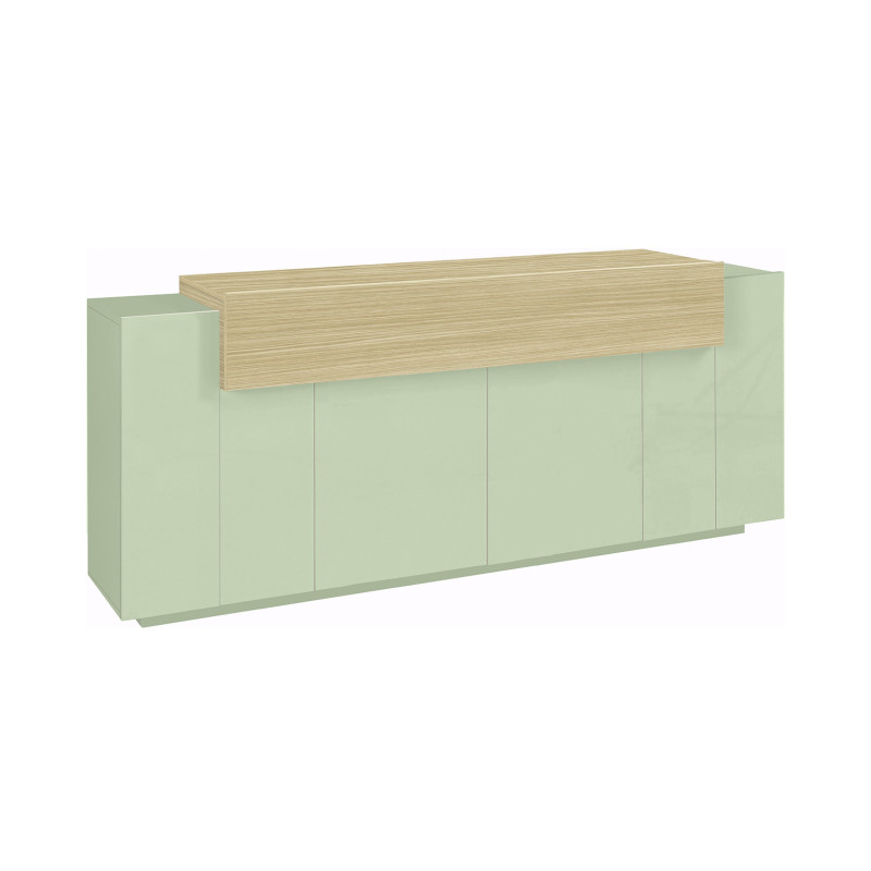 Ce modèle se distingue également par sa capacité à se fondre dans différents types d'intérieurs tout en conservant une allure sophistiquée. Que vous l’utilisiez comme enfilade dans une grande pièce de vie ou comme rangement complémentaire dans une cuisine ou un bureau, il saura répondre à vos besoins avec style. Le contraste entre le vert sauge et le chêne crée une ambiance chaleureuse et tendance, renforçant le caractère moderne du mobilier.