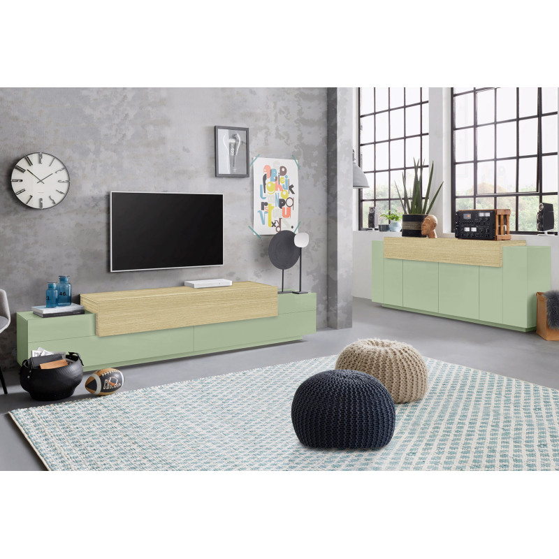 Meuble TV moderne 240 cm vert sauge/chêne Corso | ![]() | Longueur: 240 cm Hauteur: 52 cm Profondeur: 45 cm | En stock 48 à 72h | 355 € 50 | ||