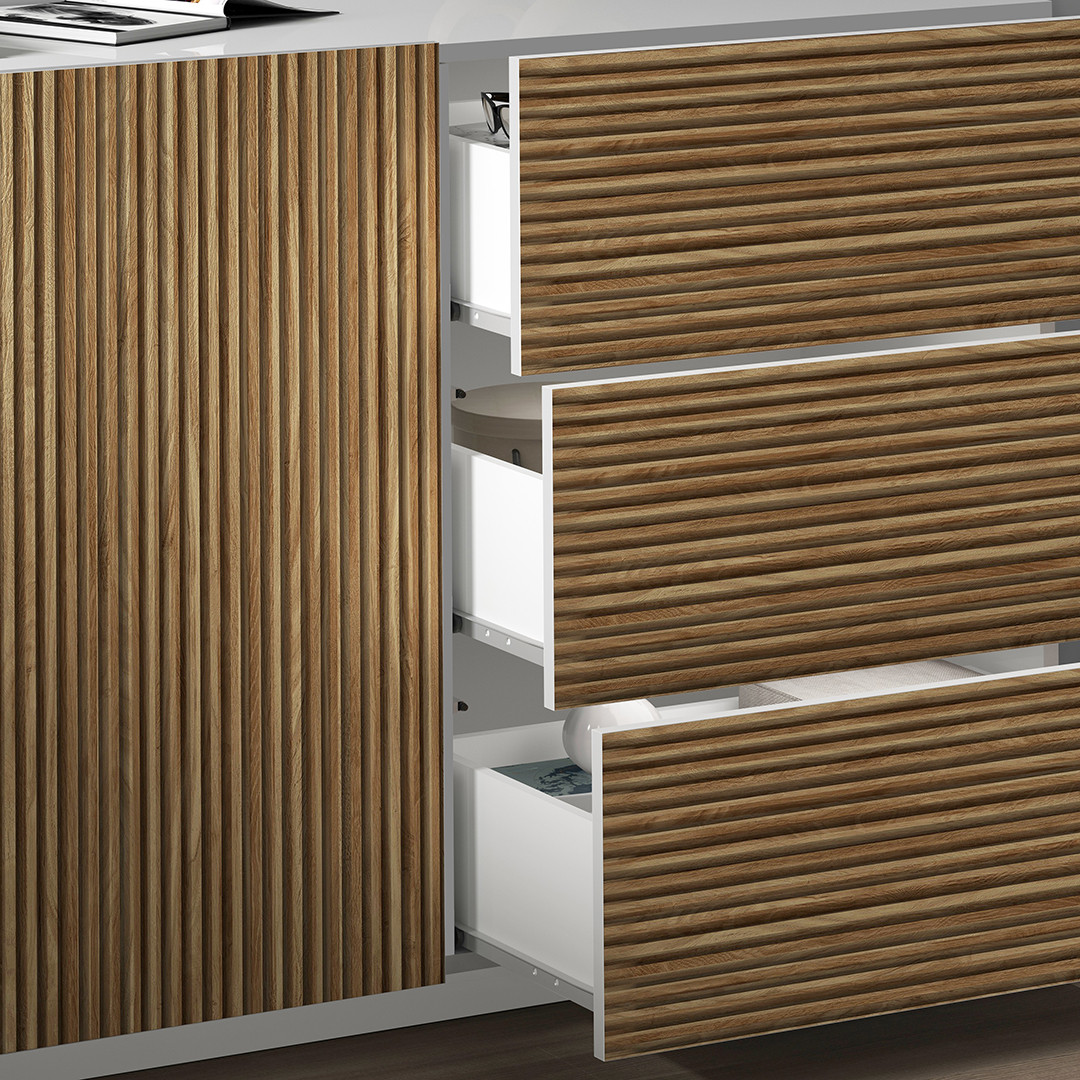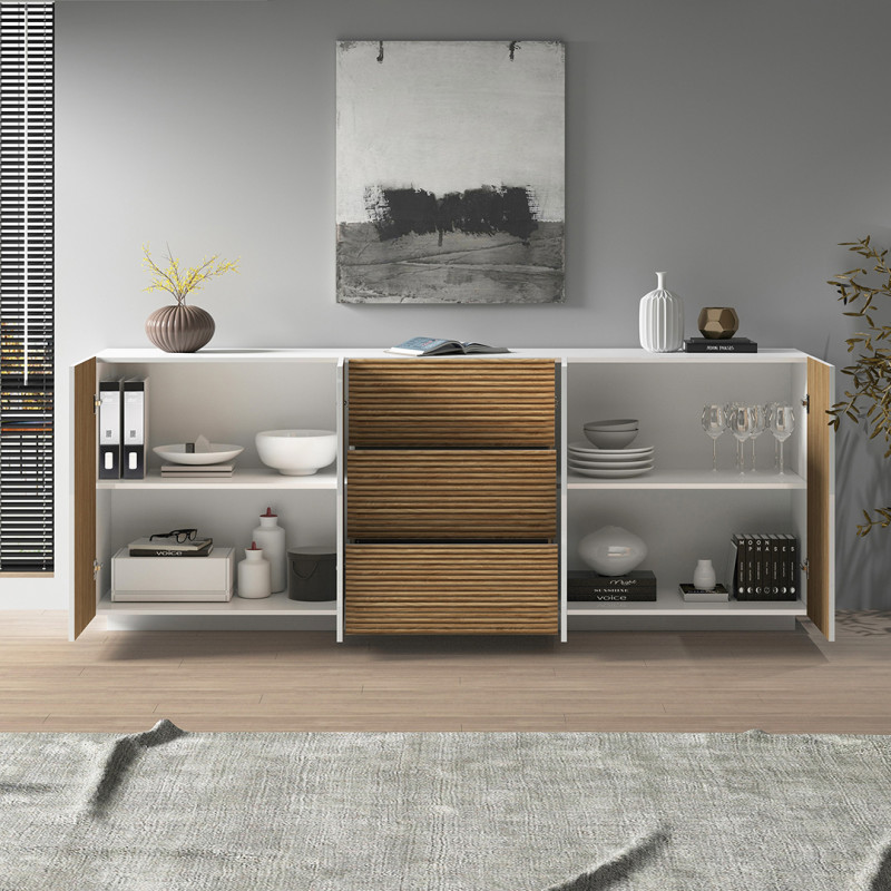 En tant que meuble de salle à manger polyvalent, le Costarica s'intègre avec naturel dans une salle à manger industrielle ou dans tout intérieur au style contemporain. Son design épuré et ses lignes droites créent une atmosphère à la fois chaleureuse et structurée, propice aux repas en famille comme aux réceptions entre amis. Que vous l'associiez à une table en bois massif, à des chaises en métal ou à un éclairage suspendu, ce meuble saura s'adapter avec élégance à votre univers décoratif.