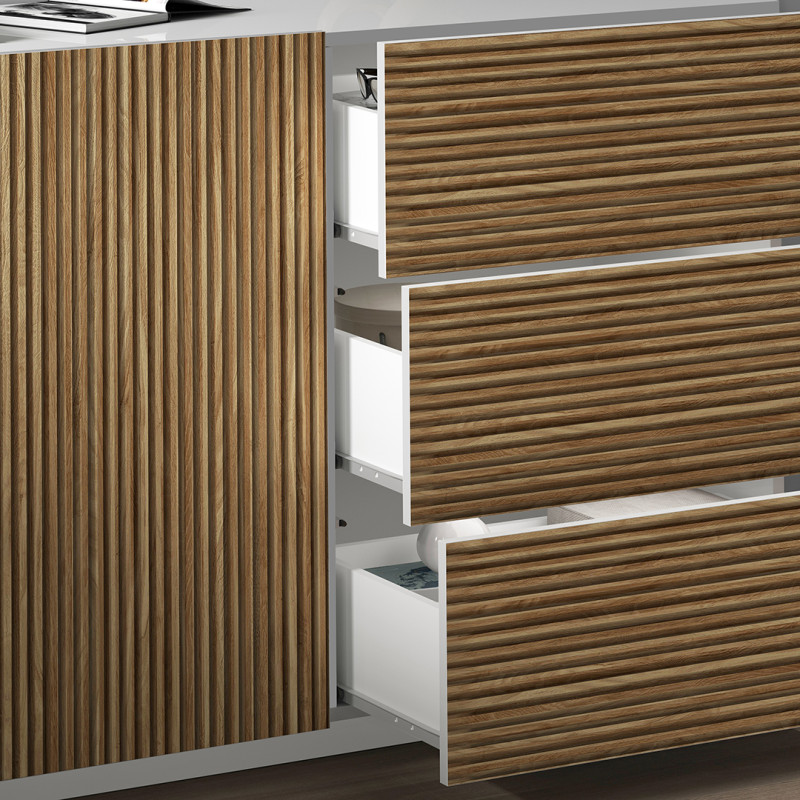 Côté rangement, ce buffet industriel se distingue par une organisation pensée pour le quotidien. Il propose 4 portes battantes et 3 tiroirs, offrant ainsi une combinaison idéale pour ranger vaisselle, linges de table, bouteilles ou objets décoratifs. Chaque espace de rangement est soigneusement dimensionné pour répondre aux besoins d'un foyer moderne. L'accès intuitif aux différents compartiments facilite votre organisation au jour le jour, sans compromis sur l'esthétique.