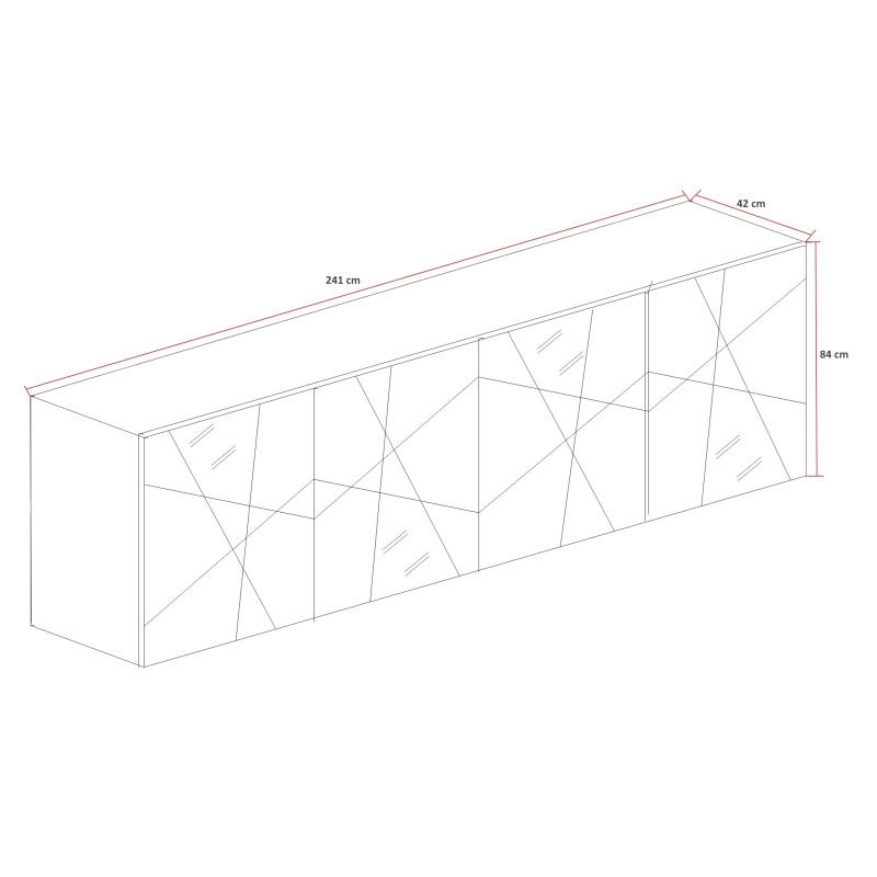 | Structure | Panneaux de particules mélaminés de haute qualité 16 et 18 mm revêtus d'une laque brillante - décor en miroir |