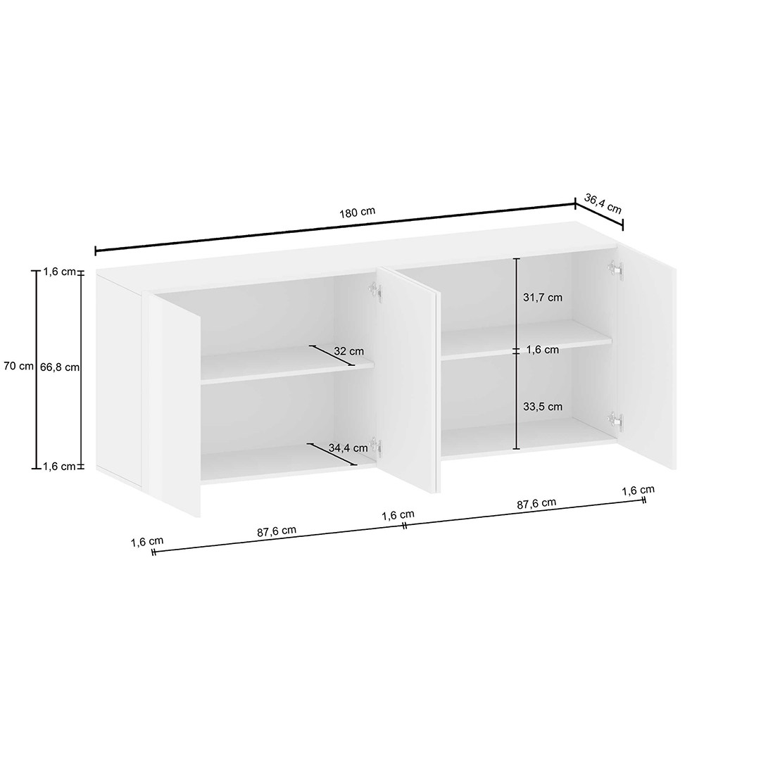 | Structure | Panneaux de particules mélaminés de première qualité 16 mm -corps blanc mat - façades blanc brillant |
