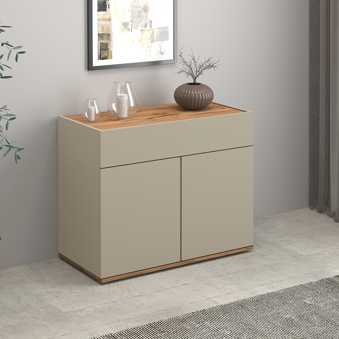 | Buffet/bahut moderne 120 cm taupe/chêne wotan Grana | | Longueur: 120 cm Hauteur: 70 cm Profondeur: 35 cm | En stock 48 à 72h | 269 € 99 | ||