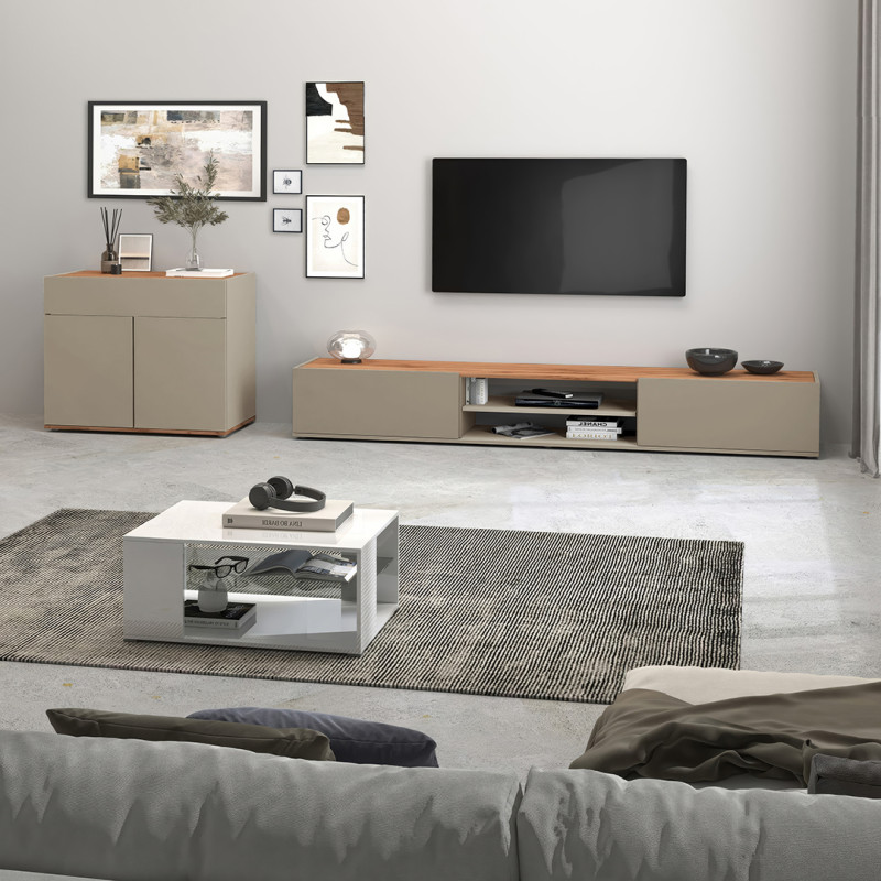 | Meuble TV moderne 210 cm taupe/chêne wotan Grana | | Longueur: 210 cm Hauteur: 30 cm Profondeur: 35 cm | En stock 48 à 72h | 255 € 00 |