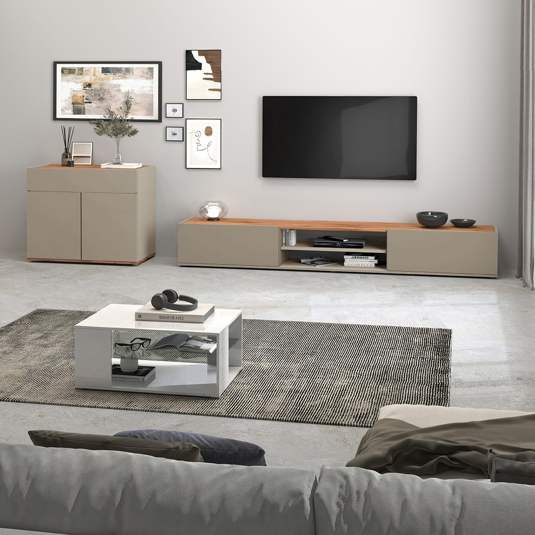 | Buffet/bahut moderne 200 cm taupe/chêne wotan Grana | | Longueur: 200 cm Hauteur: 70 cm Profondeur: 35 cm | En stock 48 à 72h | 465 € 00 | ||