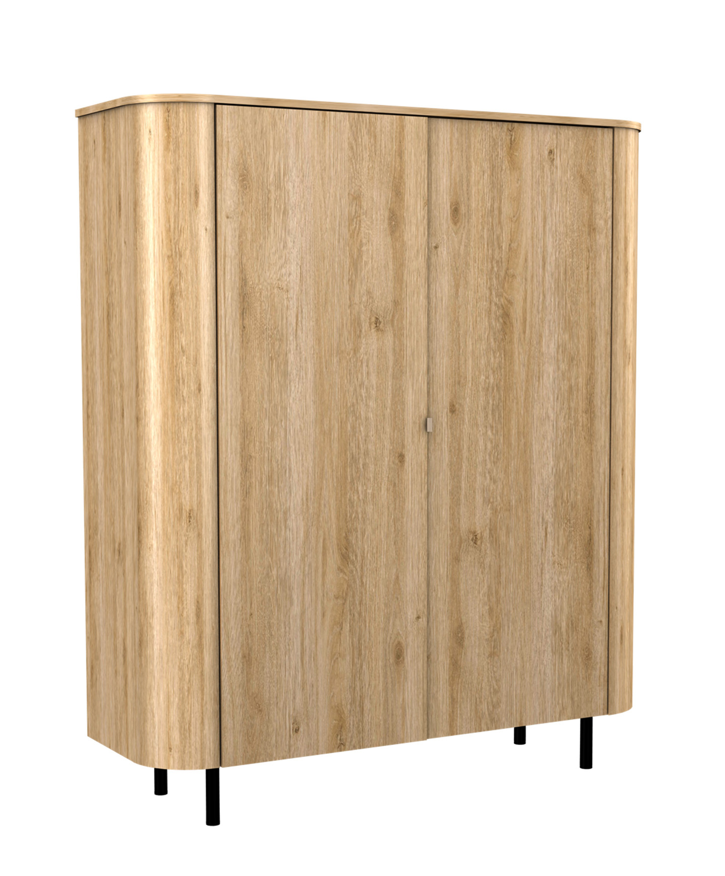 Les poignées sur les façades du meuble sont métalliques et apportent robustesse et esthétisme.
