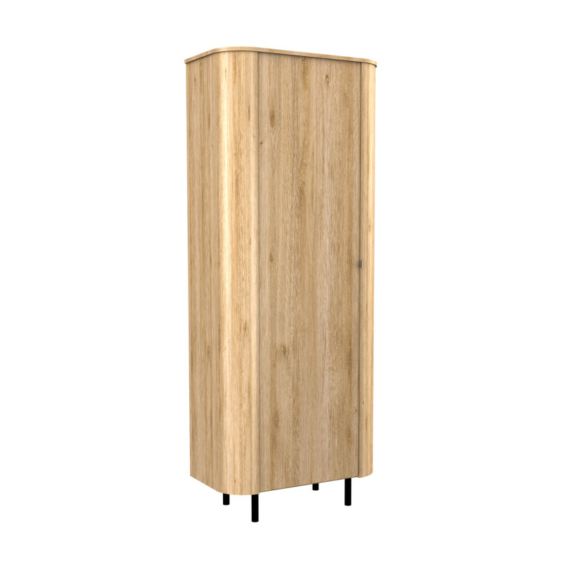 Ce meuble de salle à manger séduit par sa grande capacité de rangement malgré ses dimensions compactes. D’une hauteur de 200 cm et d’une profondeur de 43 cm, il permet d’optimiser l’espace vertical de votre pièce. Ses portes battantes, montées sur charnières métalliques robustes, dissimulent des compartiments spacieux capables d’accueillir vaisselle, verres, linge de table ou accessoires décoratifs. Les poignées en métal ajoutent une touche contemporaine et assurent une ouverture fluide au quotidien. Ce modèle s’associe harmonieusement aux autres éléments de la collection pour créer une atmosphère conviviale et raffinée.
