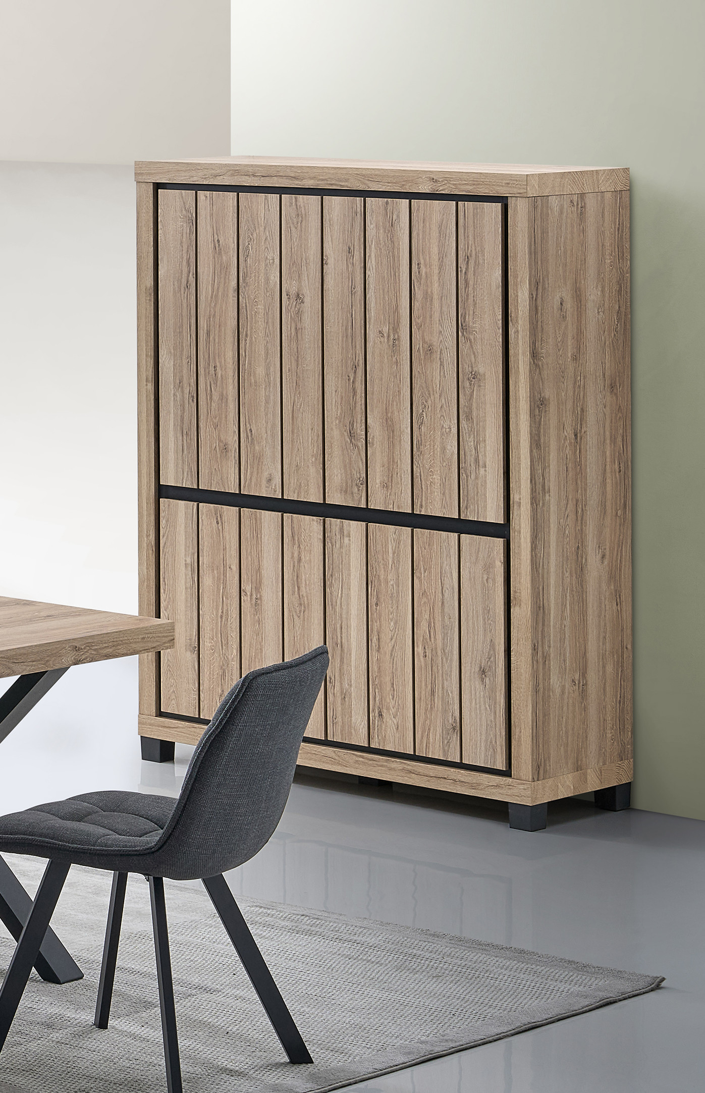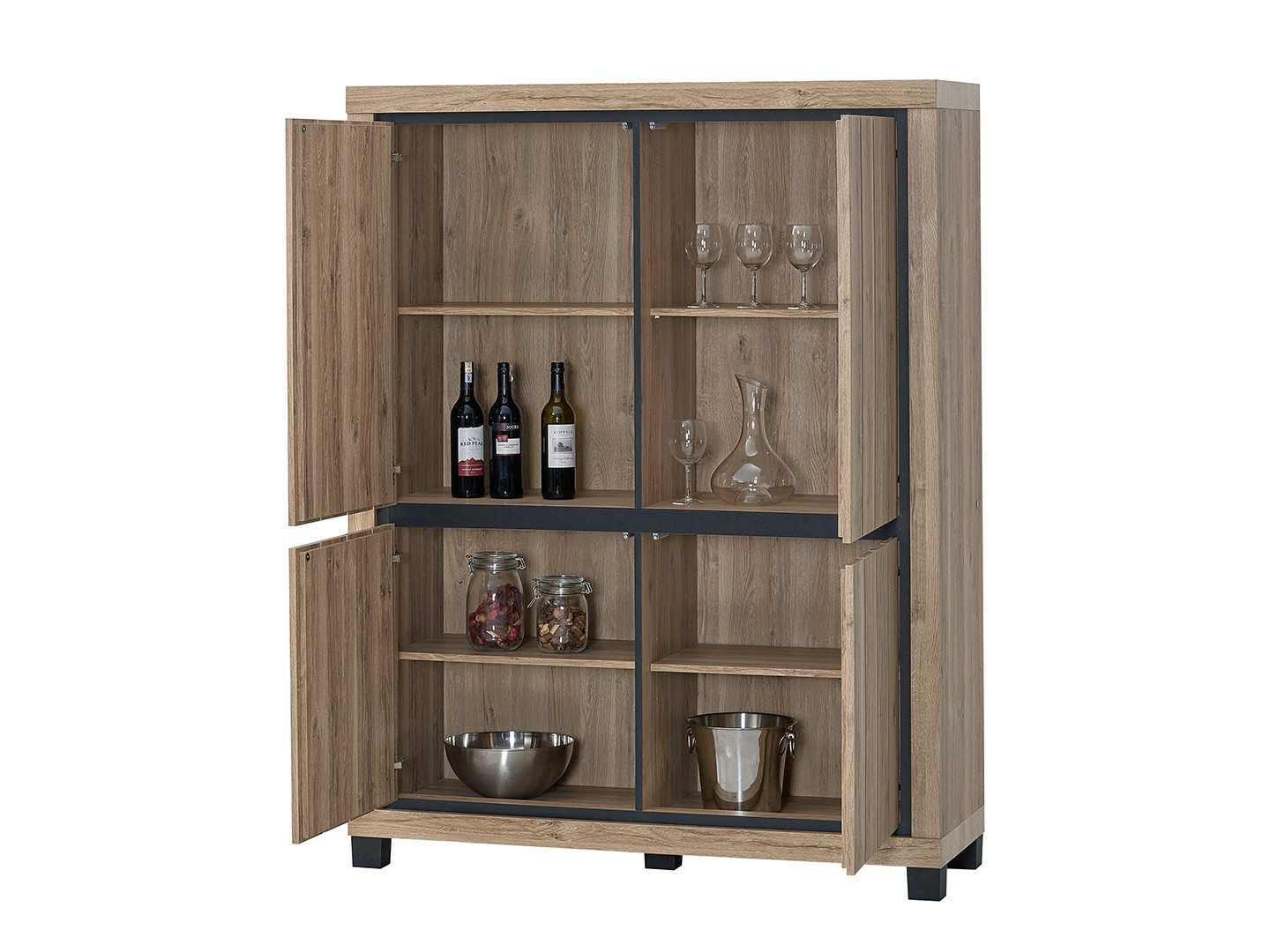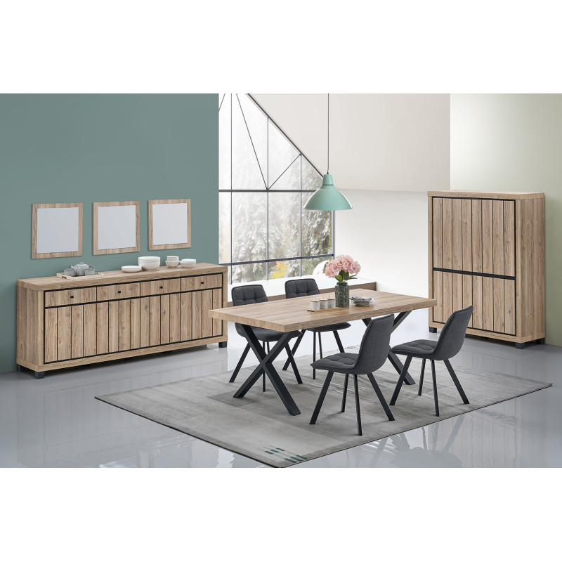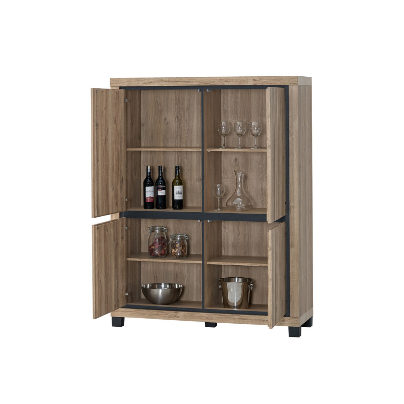 Fabriqué à partir de panneaux de particules de première qualité recouverts d'un décor chêne summer en papier décor, ce meuble de salle à manger bénéficie d'une finition soignée qui imite fidèlement le veinage naturel du bois. La robustesse des matériaux utilisés garantit une durabilité dans le temps, même dans un usage quotidien intensif. Les portes battantes, au nombre de plusieurs, permettent un accès facile et rapide au contenu du meuble tout en dissimulant l'espace de rangement de manière élégante. Chaque détail a été pensé pour répondre aux exigences d'un usage particulier moderne.