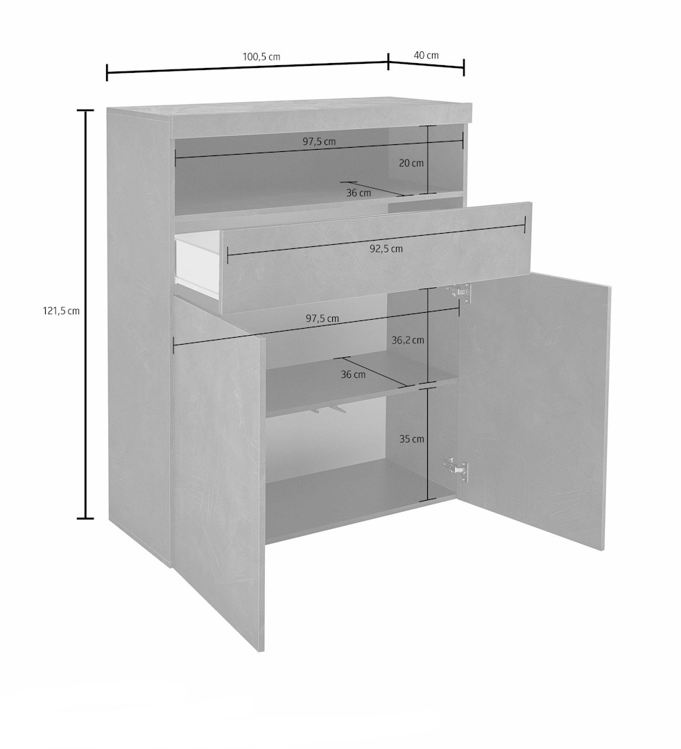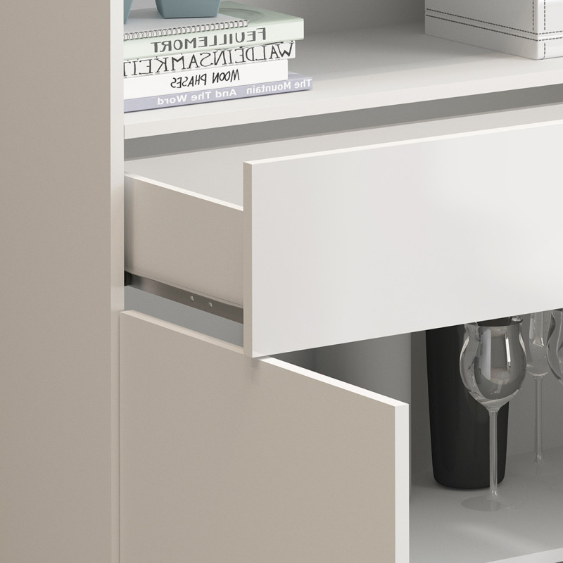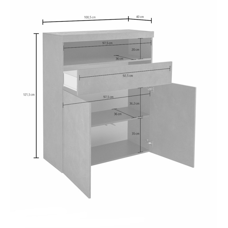 Fabriqué en Italie avec un souci du détail remarquable, ce meuble de salle à manger repose sur une structure solide en panneaux de particules mélaminés de première qualité de 16 mm d'épaisseur. Le corps du meuble arbore un blanc mat délicat, tandis que les façades affichent un blanc brillant lumineux qui reflète la lumière et agrandit visuellement la pièce. Avec ses dimensions équilibrées de 100 cm de longueur, 122 cm de hauteur et 40 cm de profondeur, il s'adapte parfaitement aux espaces de taille moyenne sans encombrer la circulation.
